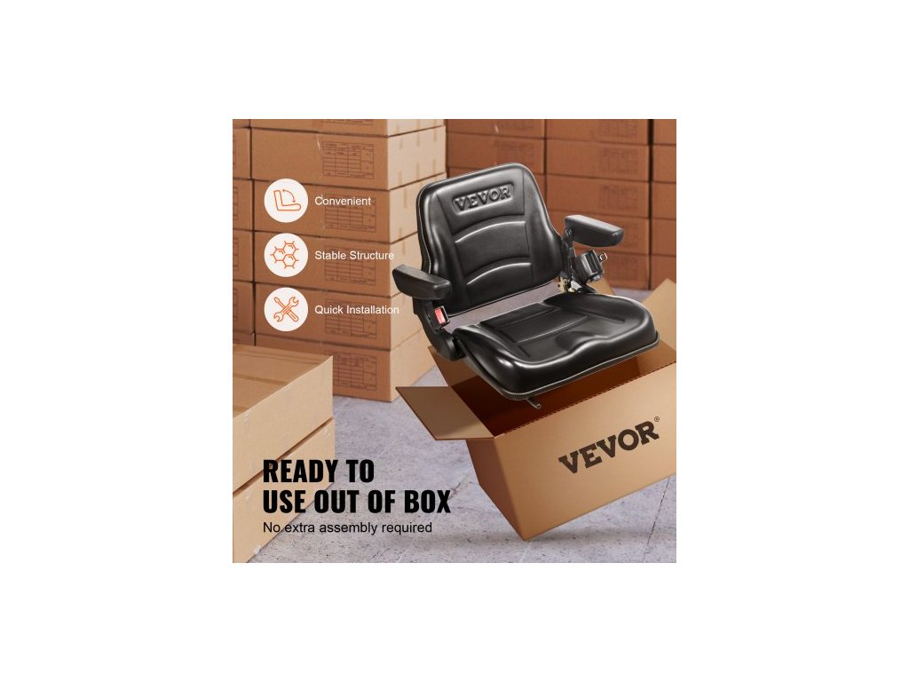 Univerzální sedadlo pro vysokozdvižný vozík , sklopné sedadlo traktoru s nastavitelným úhlem opěradla, mikrospínač, bezpečnostní pás a loketní opěrky, drážkované sedadlo traktoru 6,3-13,4 palce pro traktor, nakladač, bagr
