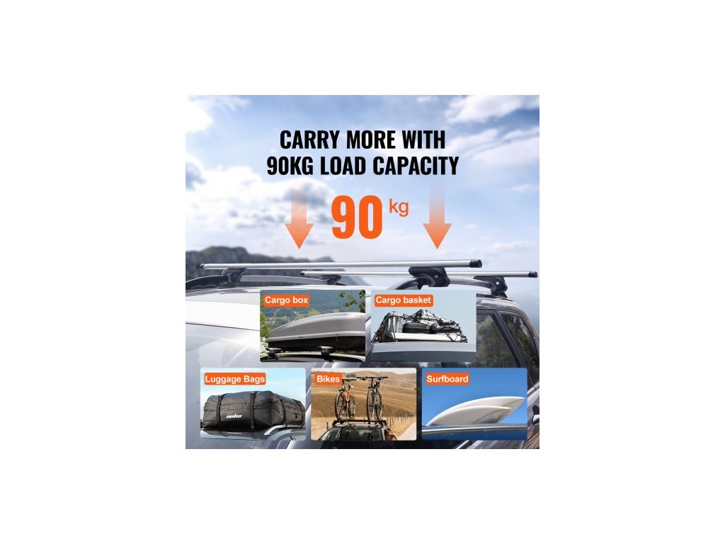 Univerzální střešní nosič , délka 132,1 cm, pro vozidla se zvýšenou bočnicíBezpečné a stabilní uchycení