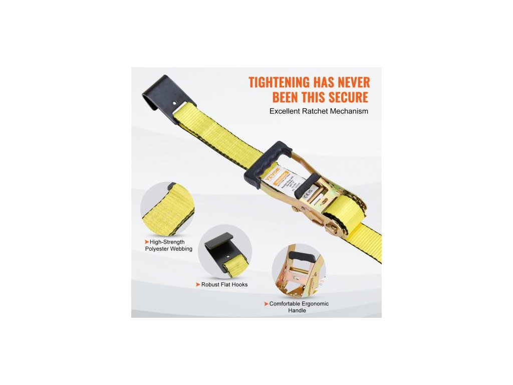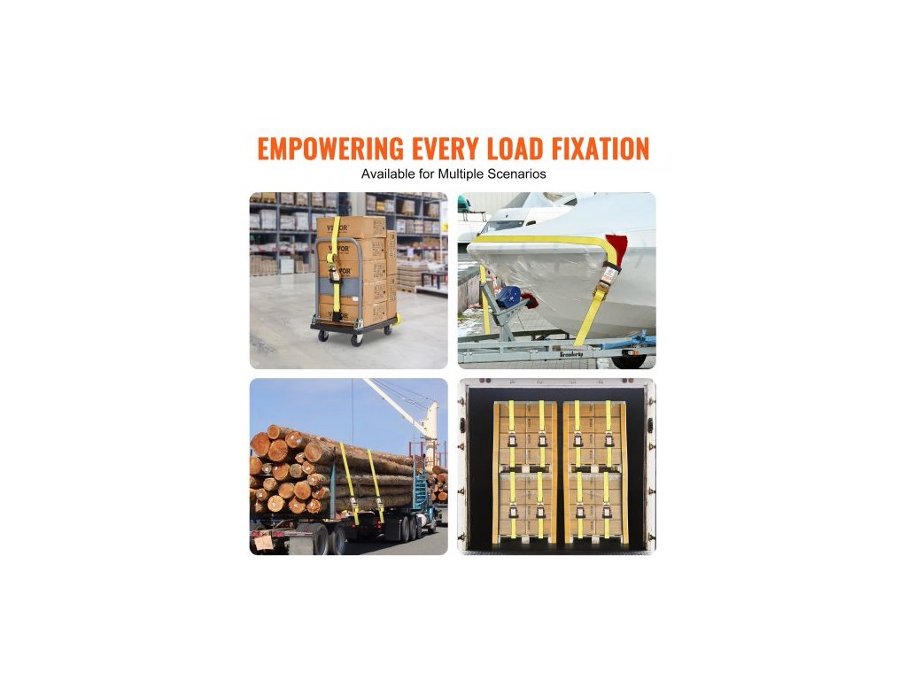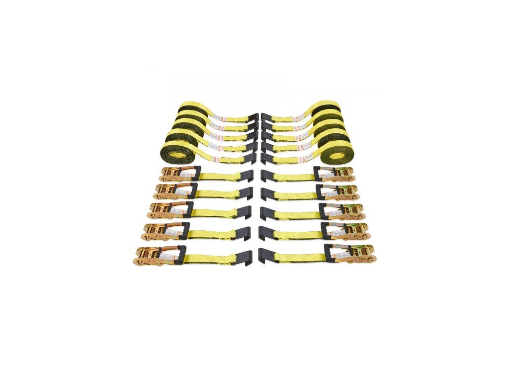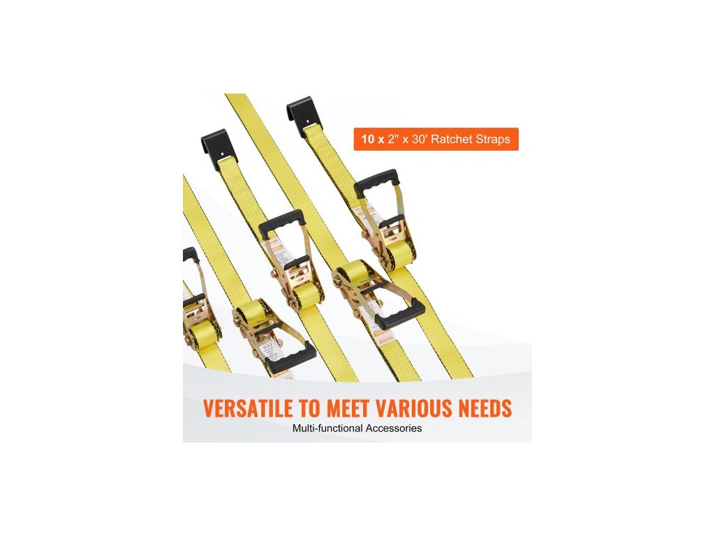 Upevňovací popruhy s ráčnou (10 ks), pevnost v tahu 10 000 lb, nekonečná ráčna s 10 prémiovými upevňovacími prvky 2" x 30', pro vysokou zátěž, pružinové kování pro přepravu a zajištění nákladu, spotřebičů a motocyklů