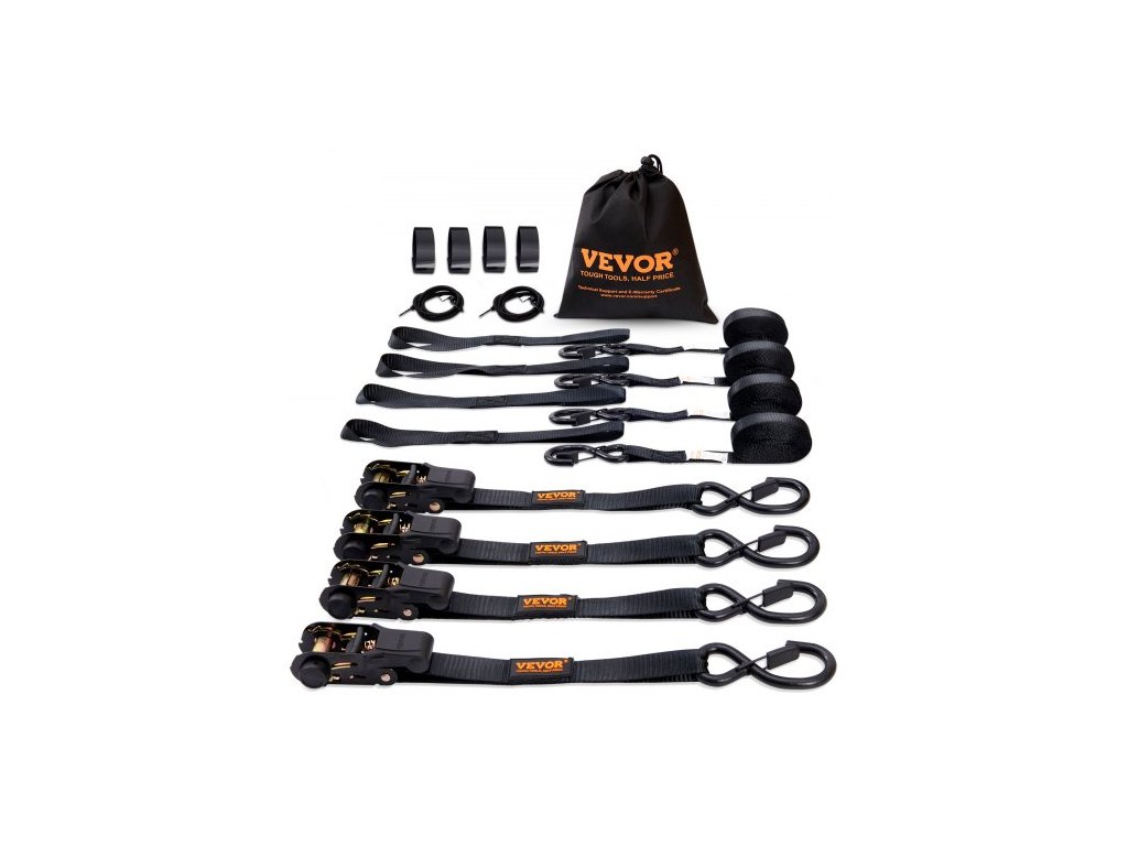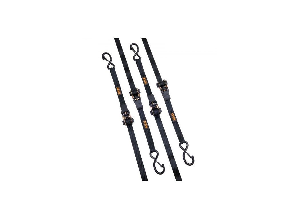Upínací popruhy s ráčnou (4 ks), maximální pevnost v tahu 2200 lb, obsahuje 4 prémiové upínací popruhy s ráčnou 1" x 15' s polstrovanými rukojeťmi, pro přepravu a zajištění nákladu, spotřebičů, zahradního vybavení, motocyklůHáky pro vysoké zatížení