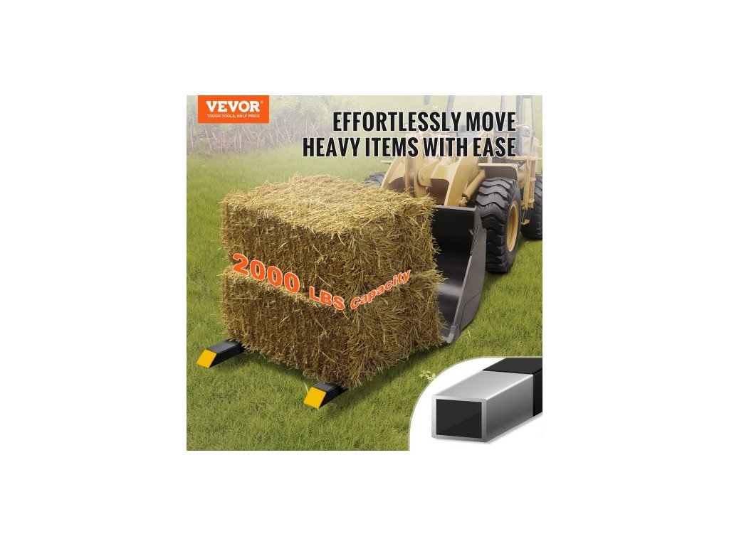 Upínací zařízení na paletové vidle, nosnost paletových vidlí 907,2 kg, vidle na lžíci traktoru 152,4 cm, vysoce odolné příslušenství pro čelní nakladač, traktor, smykem řízený nakladač, vidle traktoru pro zemědělství a farmařeníNosnost 2000 liber