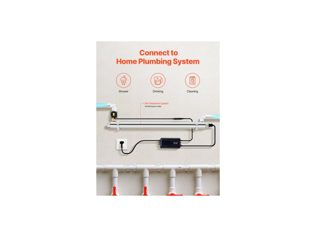 UV čistička vody , 55W 12GPM, 220V univerzální ultrafialový filtr na vodu s nerezovým pouzdrem, UV vodní filtr pro celý dům s křemenným pouzdrem vhodný pro sprchování/pití/čištěníEfektivní sterilizace
