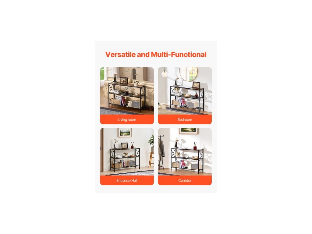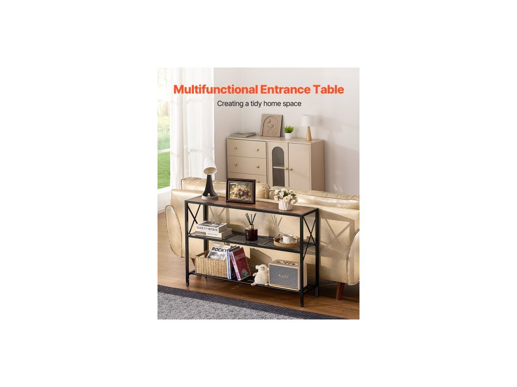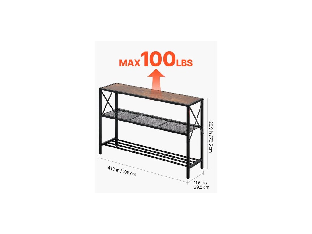 Úzký konzolový stolek k pohovkě , 41,7 palce za pohovkou, 3patrový dlouhý předsíňový stolek a úzký stolek do chodby, úzký stolek k pohovkě s kovovým rámem, do předsíně, chodby, obývacího pokoje a ložnice