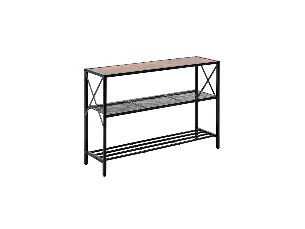 Počet vrstev: 3 vrstvy,Nosnost: 100 lbs / 45,3 kg,Podnožky: Nastavitelné podnožky,Barva: Hnědá + černá,Číslo modelu položky: YJXXGZ-006,Materiál rámu: Čtvercová trubka z uhlíkové oceli,Rozměry police: 13,3 x 10,0 x 0,5 palce / 33,8 x 25,3 x 1,2 cm,Rozměry čtvercové trubky rámu: 0,8 x 0,8 x 0,02 palce / 20 x 20 x 0,6 mm,Rozměry výrobku: 41,7 x 11,6 x 28,9 palce / 106 x 29,5 x 73,5 cm,Čistá hmotnost: 17,9 lbs / 8,1 kg,Materiál police: MDF s melaminovou dýhou