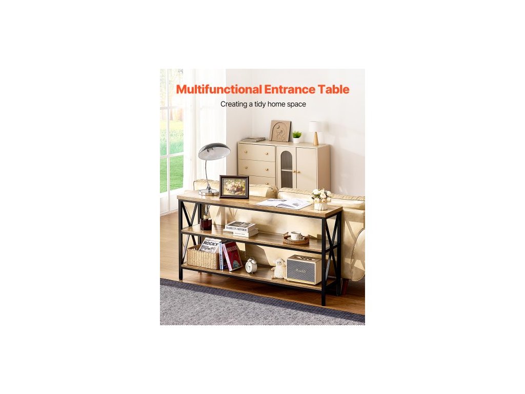 Úzký konzolový stolek k pohovkě , 55,1 palce za pohovkou, 3patrový dlouhý předsíňový stolek a úzký stolek do chodby, úzký stolek k pohovkě s kovovým rámem, do předsíně, chodby, obývacího pokoje a ložnice