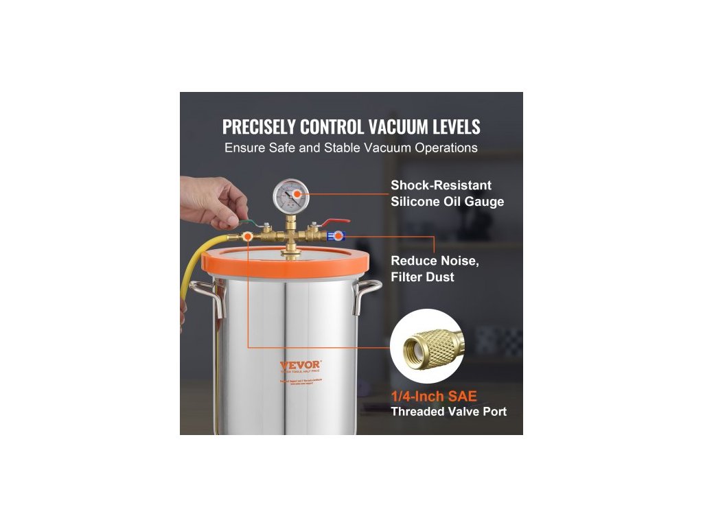 Vakuová komora s víkem z tvrzeného skla, odplyňovací komora o objemu 18,9 l, silikonová5-galonová vakuová komora