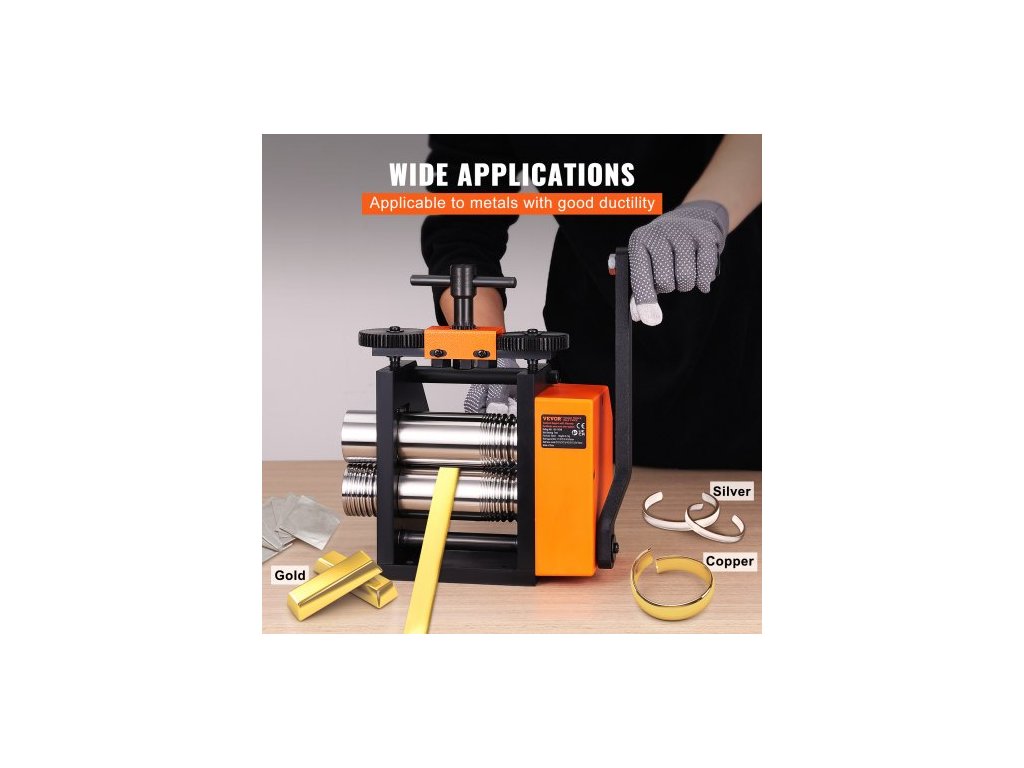 Válcovna , válcovací stolice na šperky 2,95"/75 mm, převodový poměr 1:2, multifunkční válcovací stolice 3 v 1, tloušťka lisu 0,03-6,5 mm pro výrobu kovových šperků, plechů, čtvercových drátů, půlkruhůMultifunkční válcovací stolice 3 v 1
