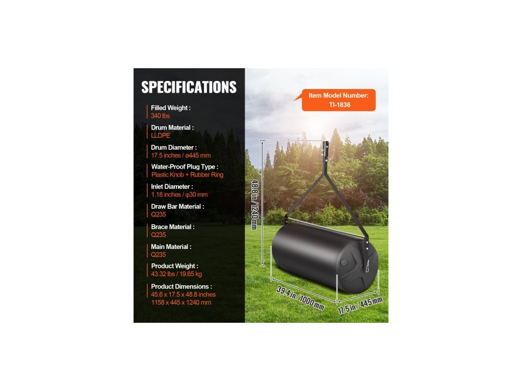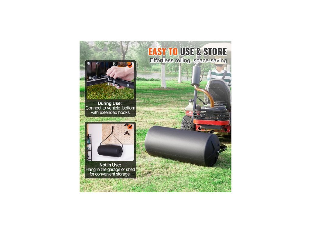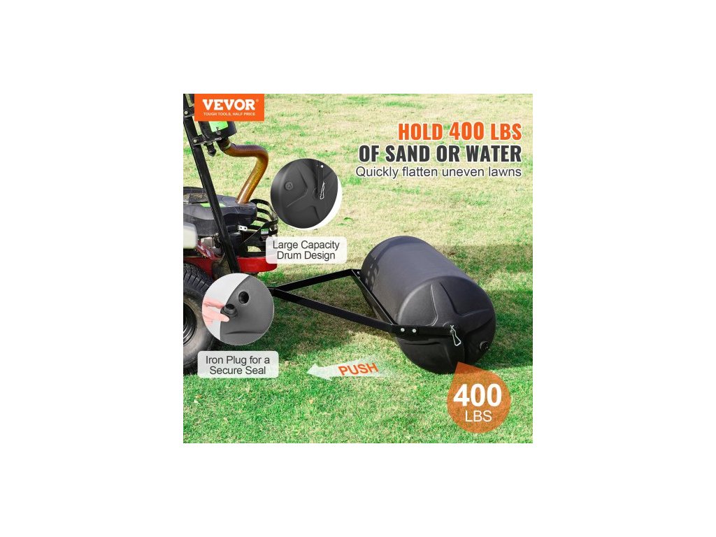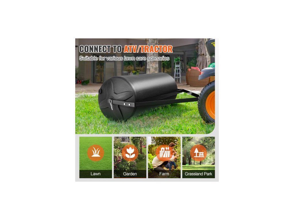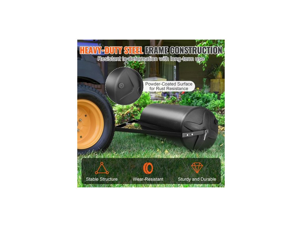 Válec na trávník Tow Behind, 180 kg válec na trávník plněný pískem/vodou, buben z LLDPE a ocelový rám s otočnou zástrčkou, tažení za traktorem nebo čtyřkolkou pro trávník, zahradu, farmu, park, černá