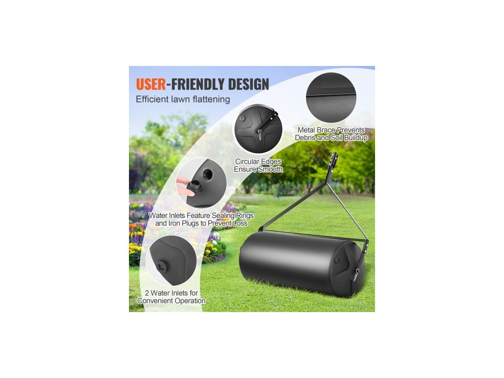 Tažný válec na trávník, 180 kg válec na trávník plněný pískem/vodou, buben LLDPE a ocelový rám s ocelovou zátkou, snadno se otáčí, tažení za traktorem nebo čtyřkolkou pro trávník, zahradu, farmu, park, černýTažný válec na trávník 180 kg