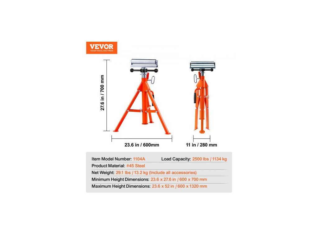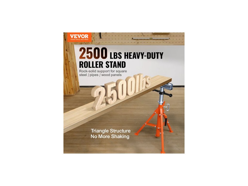 Válečkový stojan , nosnost 1134 kg, nastavitelná výška 700 mm–1320 mm, skládací ocelový válečkový stojan o síle 45# pro trubky a dřevěné deskySilná opěra