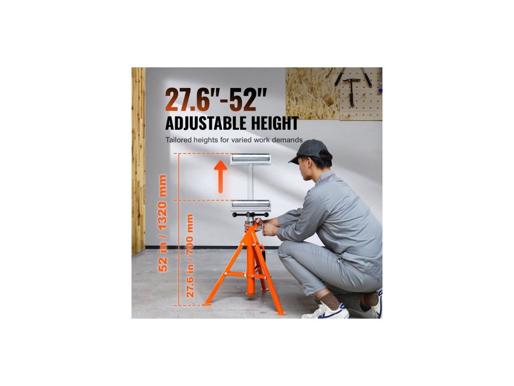 Válečkový stojan, nosnost 1134 kg, nastavitelná výška 700 mm–1320 mm, ocelový skládací válečkový stojan 45# pro trubky, dřevěné desky
