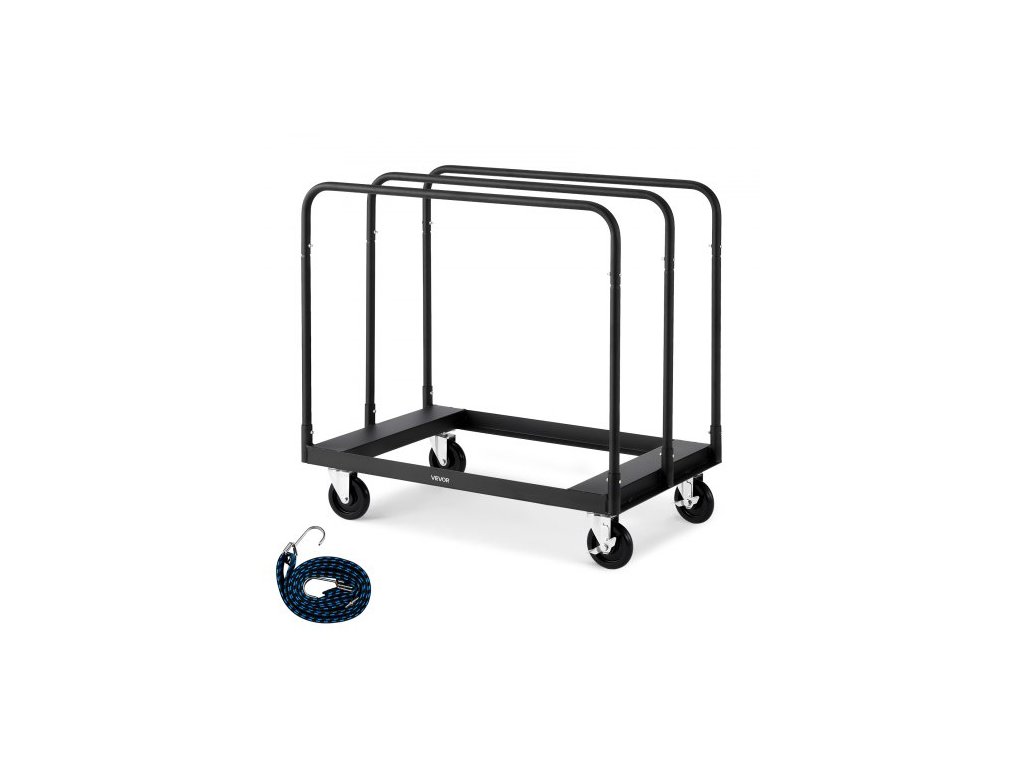 VEGOR vozík na sádrokarton, nosnost 816 kg, ocelový panelový vozík s otočnými kolečky 12,5 mm, vozík na sádrokarton s upevňovacím popruhem a 3 bočními madly pro továrnu, sklad, garáž, černý