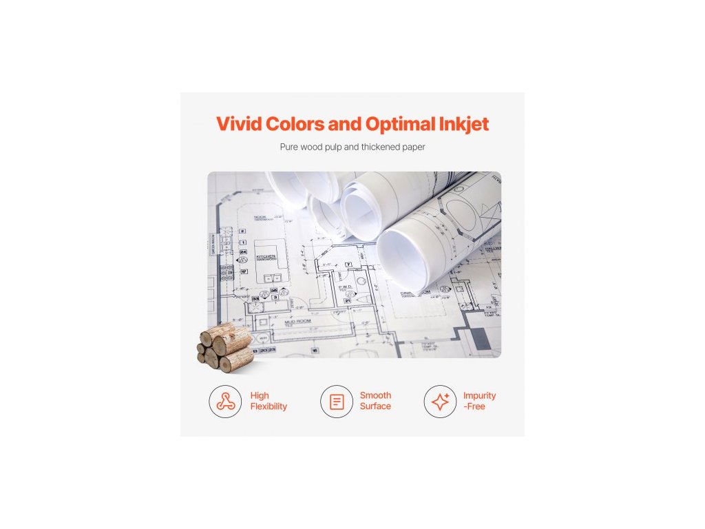 Širokoformátový papír , plotrový papír 24 palců x 150 stop, 4 role CAD rolí s 2palcovým jádrem, role s gramáží 20 LB, ideální pro CAD výkresy, technické plány, GIS mapy a architektonické návrhyŠirokoformátové role papíru