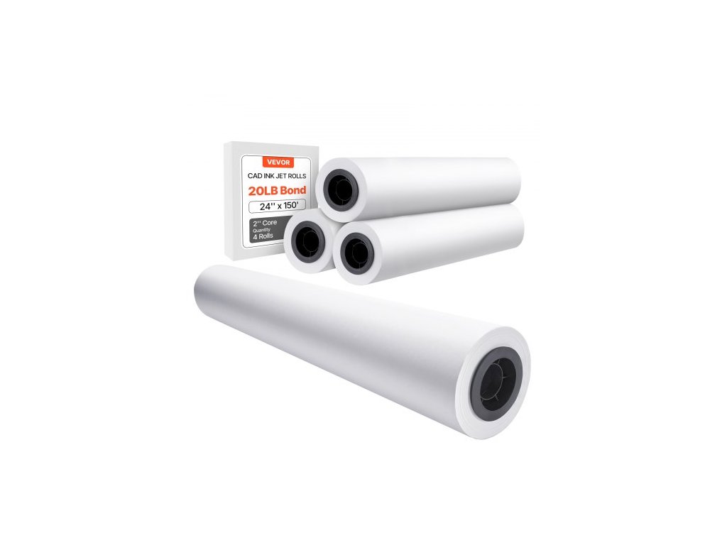 Velkoformátový papír , plotrový papír 24 palců x 150 stop, 4 role CAD rolí s jádrem 2 palce, role papíru o hmotnosti 20 LB, nápad pro CAD výkresy, technické plány, GIS mapy a architektonické návrhy