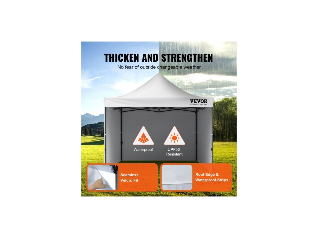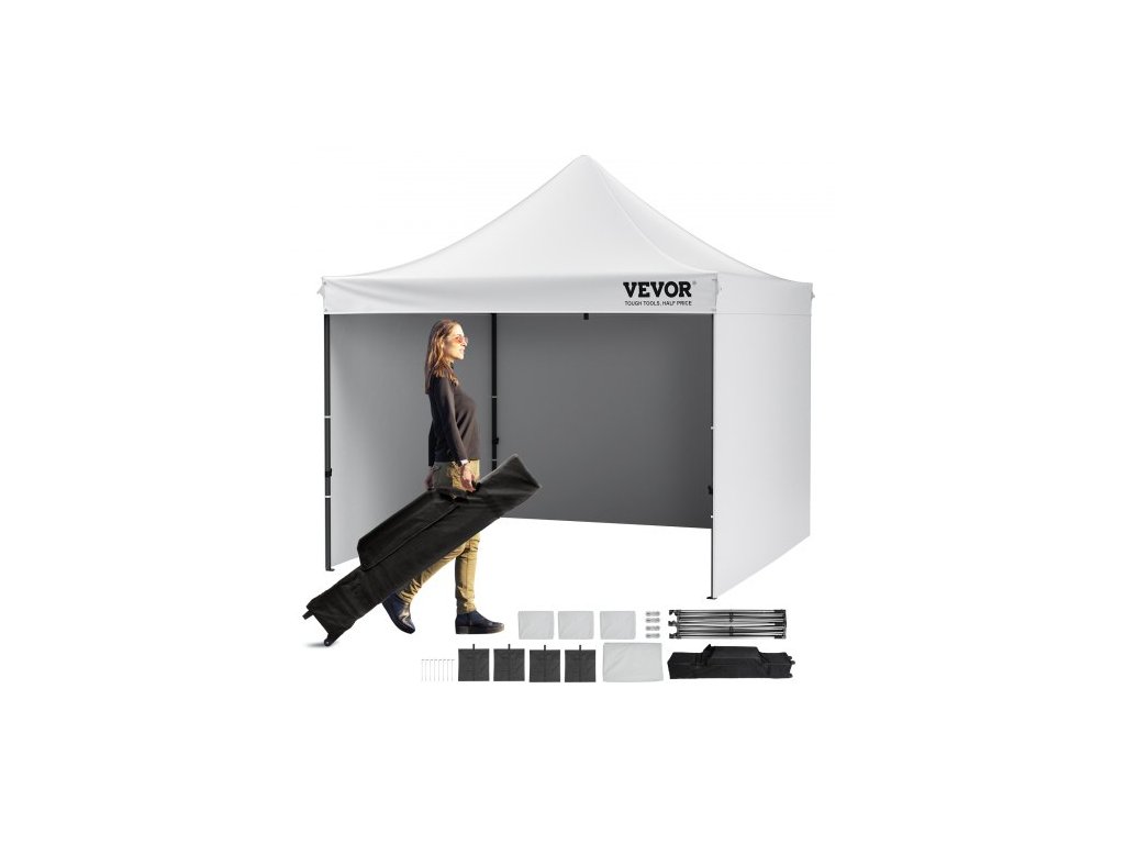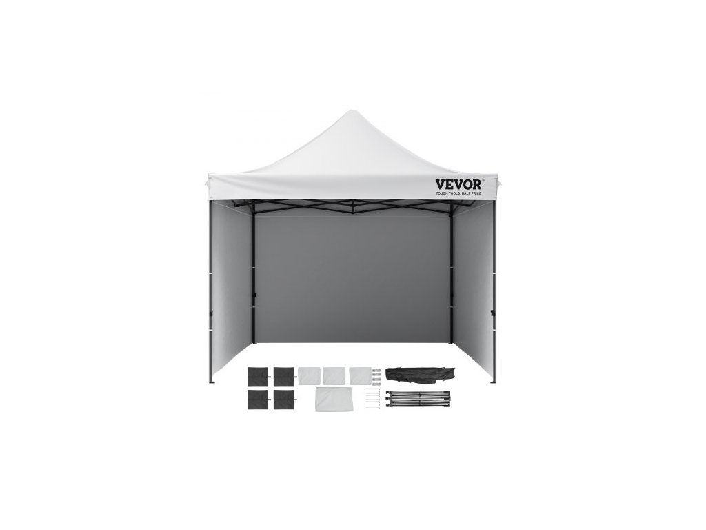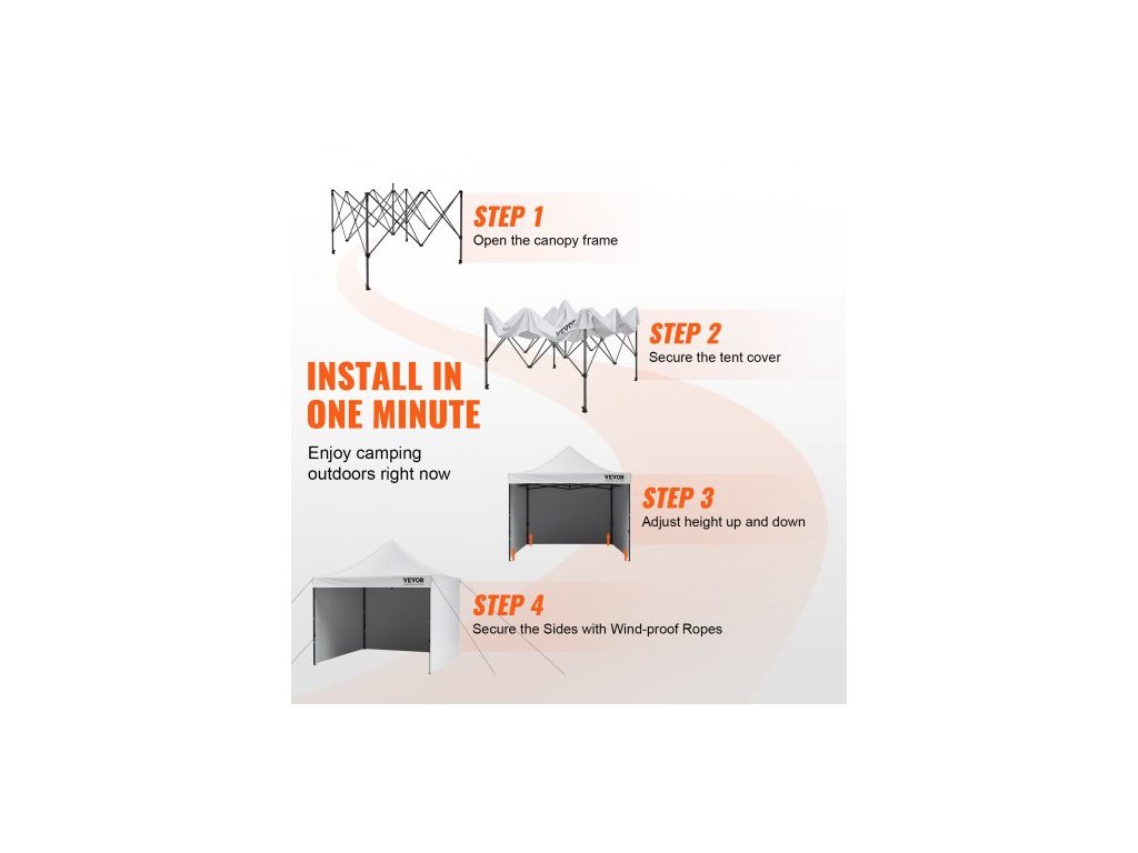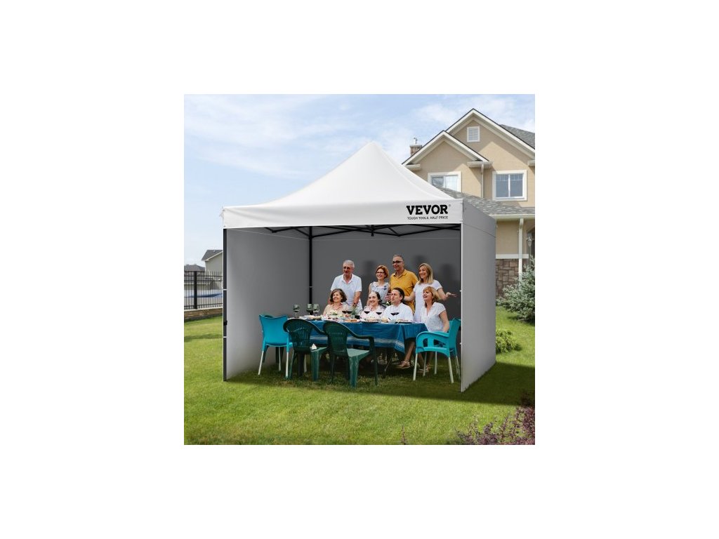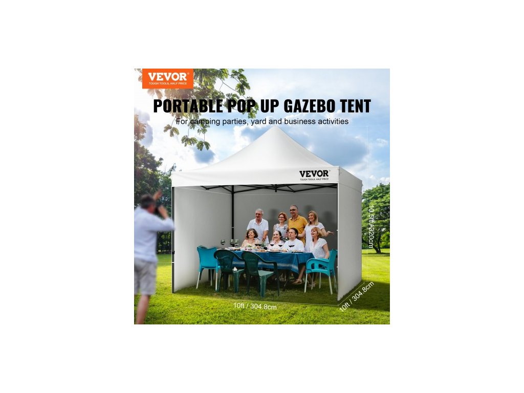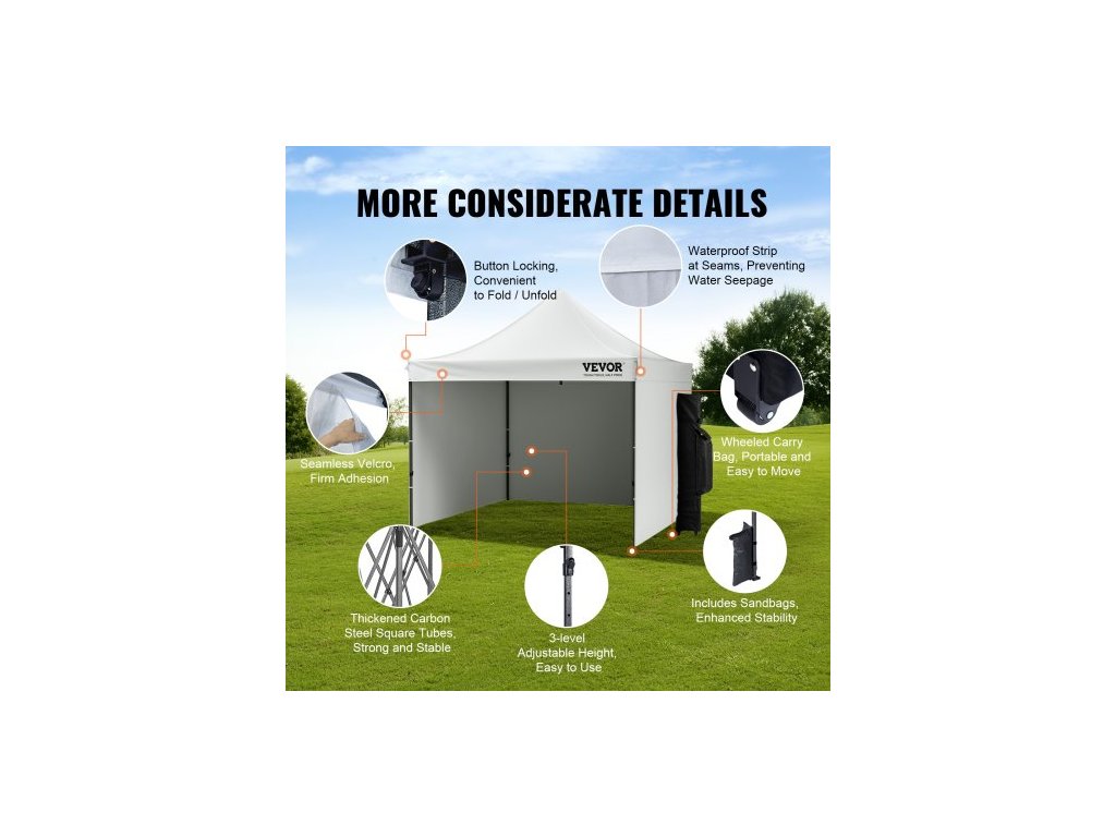 Barva krytu: Bílá, Materiál krytu: 500D PU stříbrná tkanina, Materiál rámu: Uhlíková ocel Q195,3 Nastavitelná výška: 9,84, 10,2, 10,5 FT / 300, 310, 320 cm, Plně rozložené rozměry: 10 x 10 FT / 304,8 x 304,8 cm, Čistá hmotnost: 48,1 lbs / 21,8 kg, Rozměry úložného vaku: 63,4 x 9,8 x 9,8 palce / 161 × 25 × 25 cm