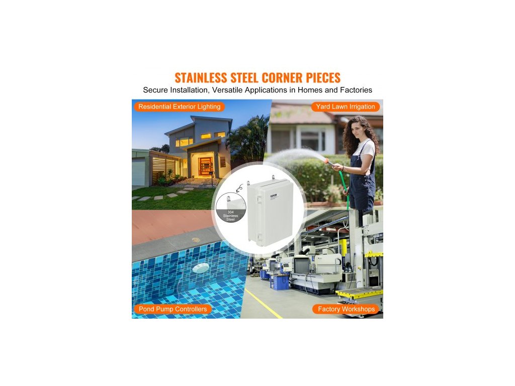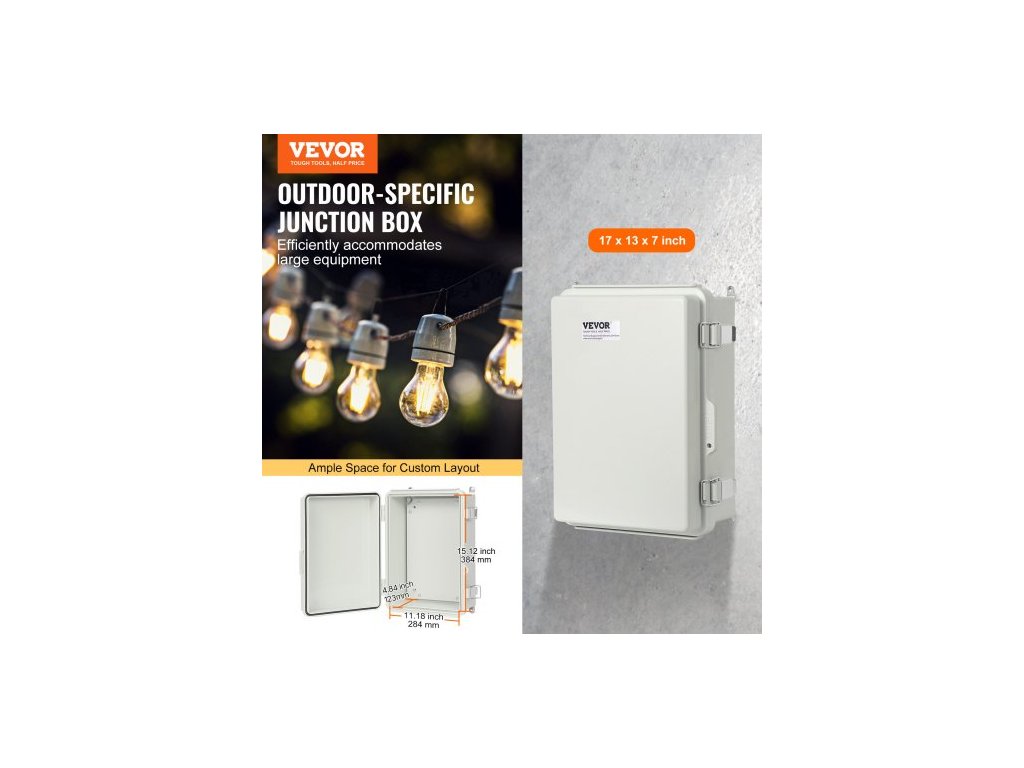 Venkovní elektrická rozvodná krabice , 430 x 330 x 180 mm, ABS plastová elektrická krabice s výklopným krytem, západka z nerezové oceli, krytí IP67, prachotěsná, vodotěsná pro venkovní elektrické projektyElektrická rozvodná krabice