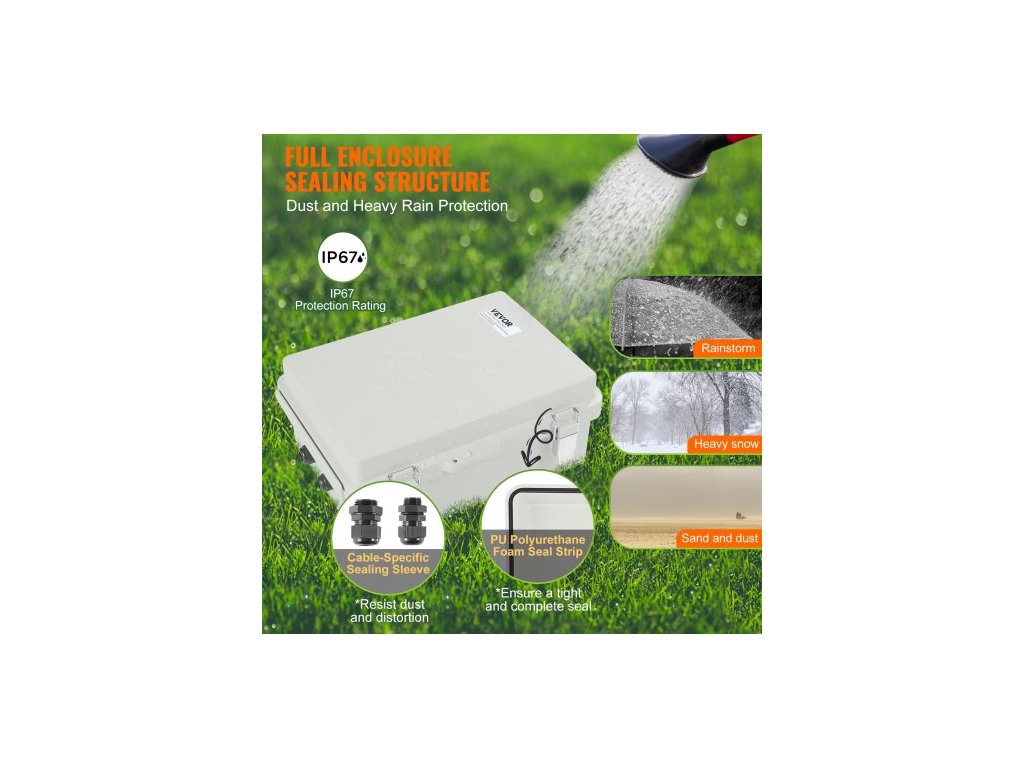 Venkovní elektrická rozvodná krabice , 430 x 330 x 180 mm, ABS plastová elektrická krabice s výklopným víkem, západka z nerezové oceli, IP67, prachotěsná, vodotěsná, pro venkovní elektrické projekty