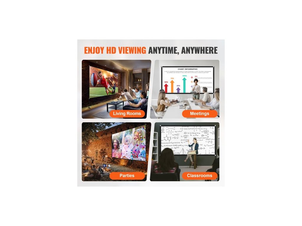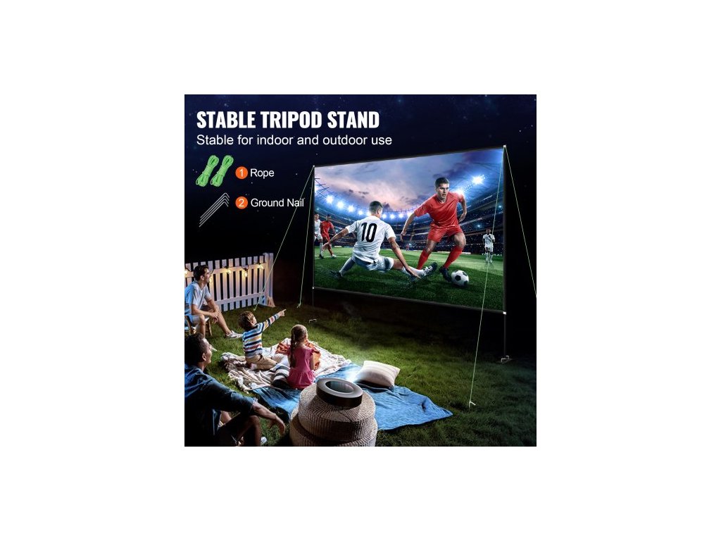Venkovní filmové plátno se stojanem, přenosné filmové plátno 150", širokoúhlé venkovní projekční plátno 16:9 HD, přední a zadní projekce, s úložným vakem a stojanem pro kancelářské, domácí kino, venkovní a vnitřní použitíProjekční plátno 16:9 HD