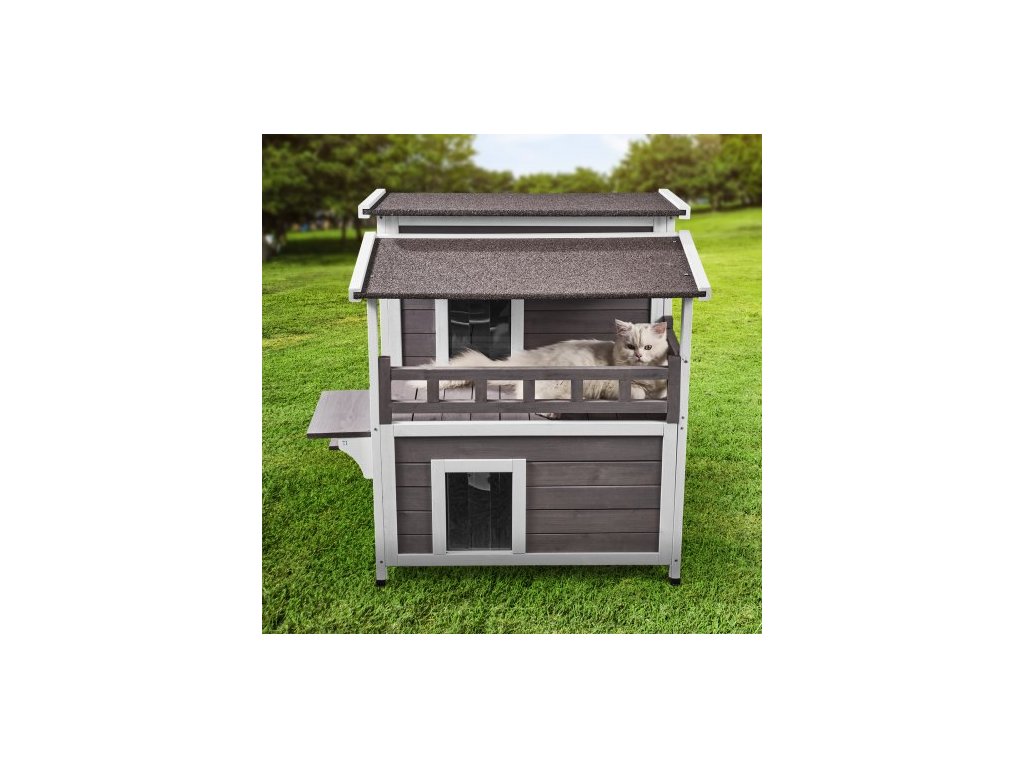 Dvoupatrový venkovní kočičí přístřešek