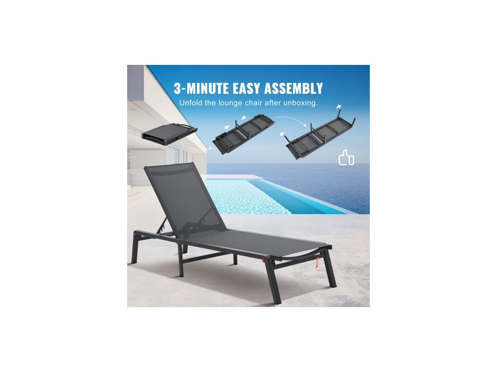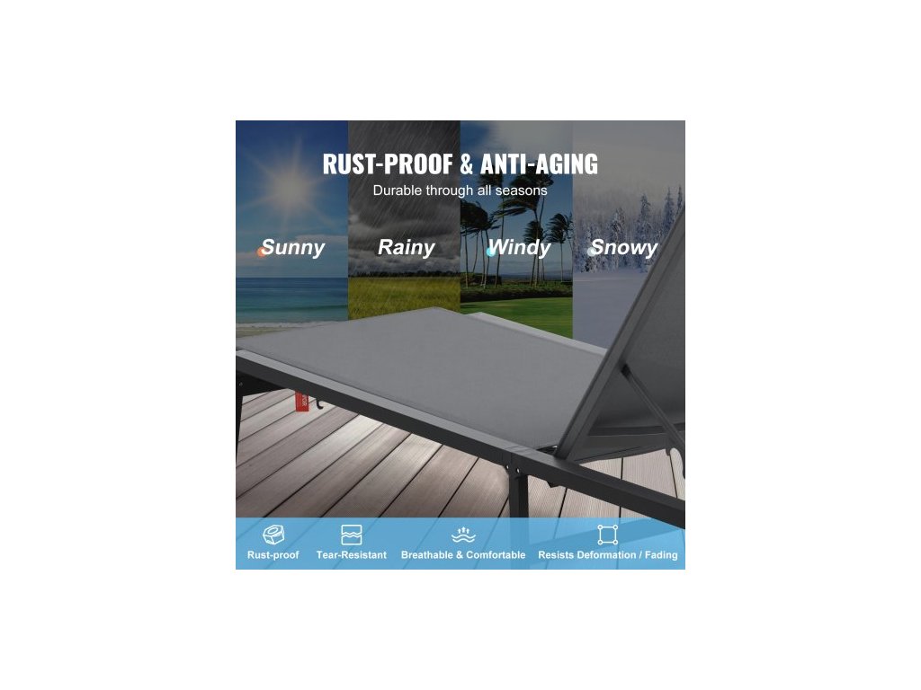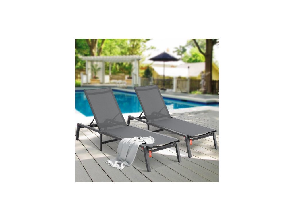 Venkovní lehátka , hliníková zahradní lehátka s nastavitelnými 5 polohami, skládací bazénová lehátka, polohovací a plně plochá opalovací křesla na terasu, pláž, bazén, tmavě šedá, 2 ksSkládací zahradní lehátko