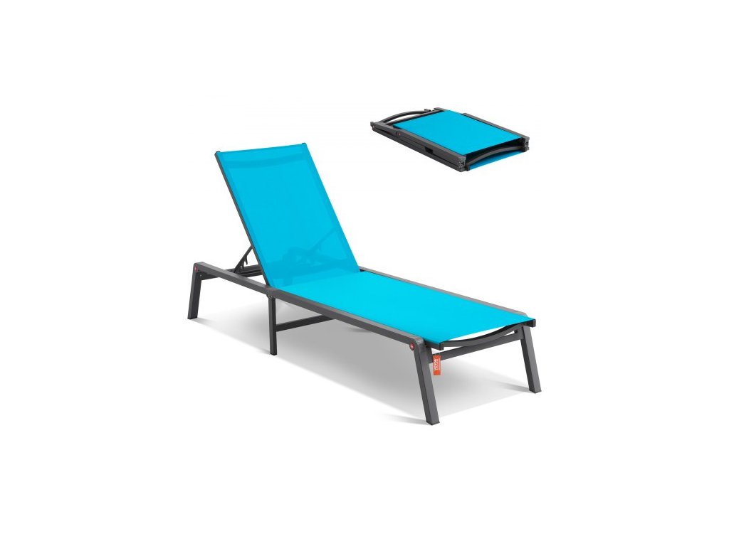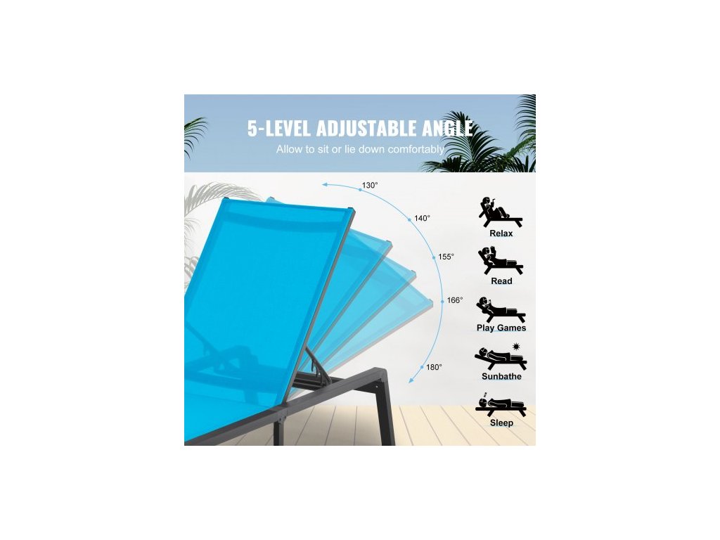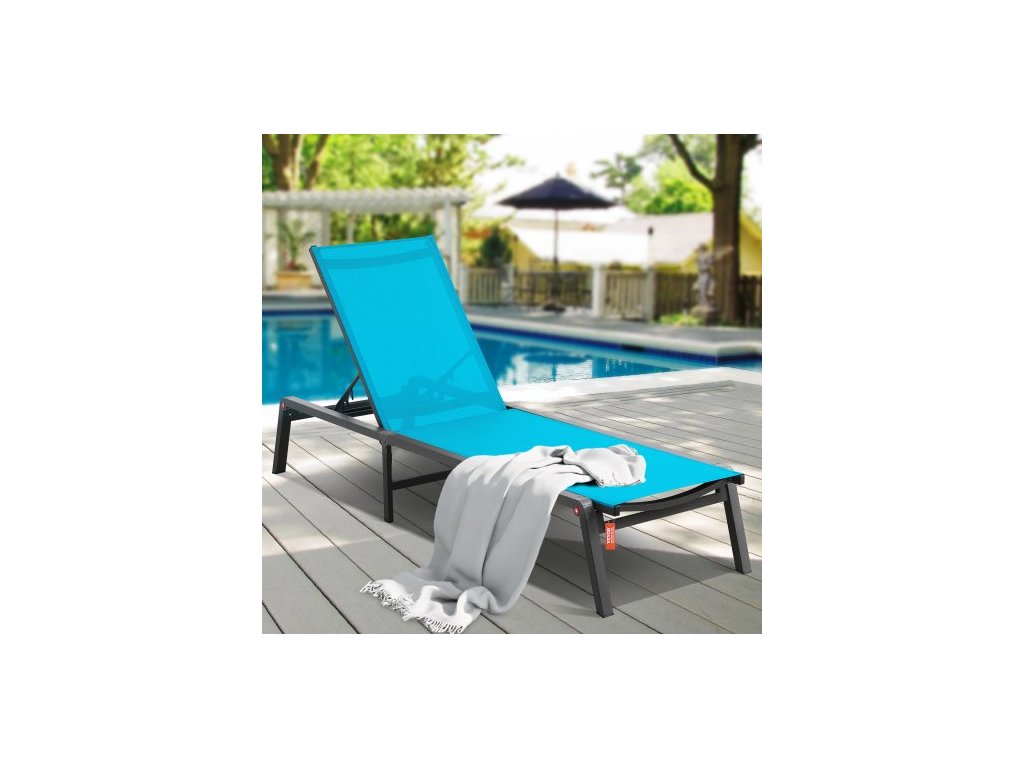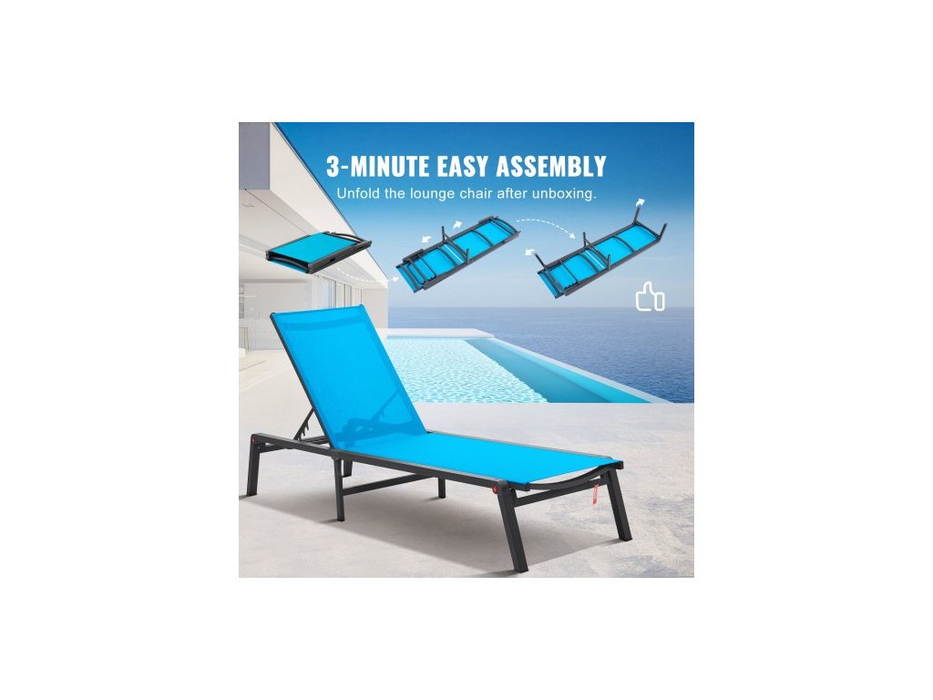 Venkovní lehátko , hliníkové zahradní křeslo s nastavitelným 5polohovým polohováním, skládací bazénové křeslo a plně ploché opalovací křeslo na terasu, pláž, bazén, modré