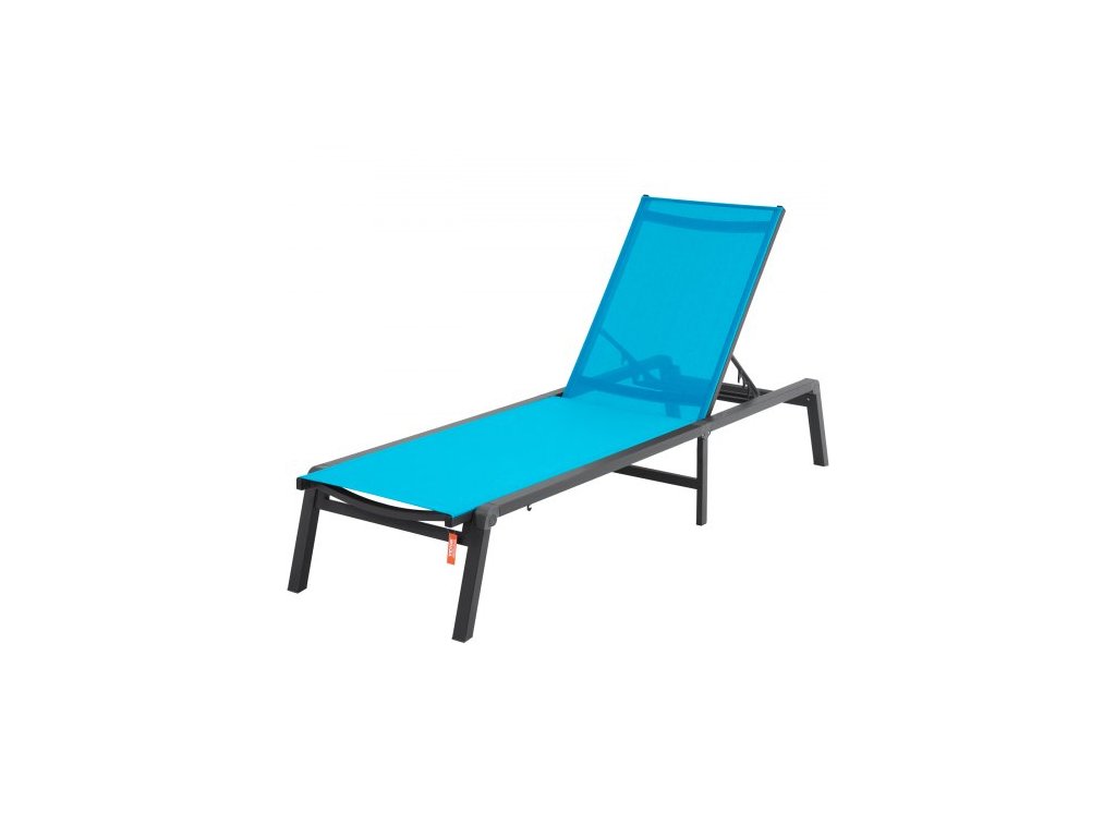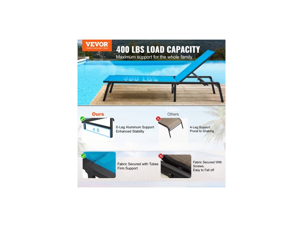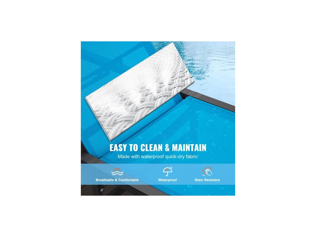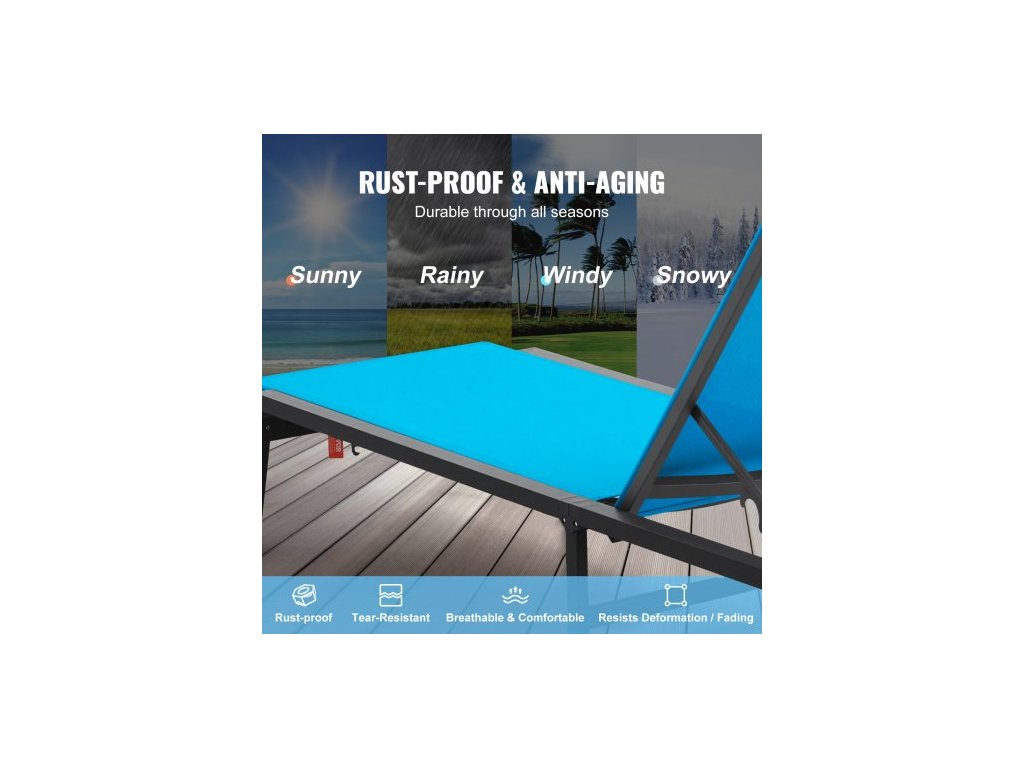 Venkovní lehátko , hliníkové zahradní křeslo s nastavitelným 5polohovým polohováním, skládací bazénové křeslo a plně ploché opalovací křeslo na terasu, pláž, bazén, modré