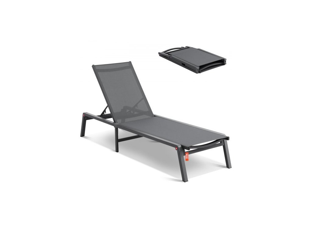 Venkovní lehátko , hliníkové zahradní křeslo s nastavitelným 5polohovým polohováním, skládací bazénové křeslo a plně ploché opalovací křeslo na terasu, pláž, bazén, tmavě šedé