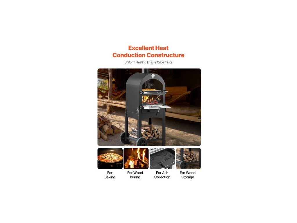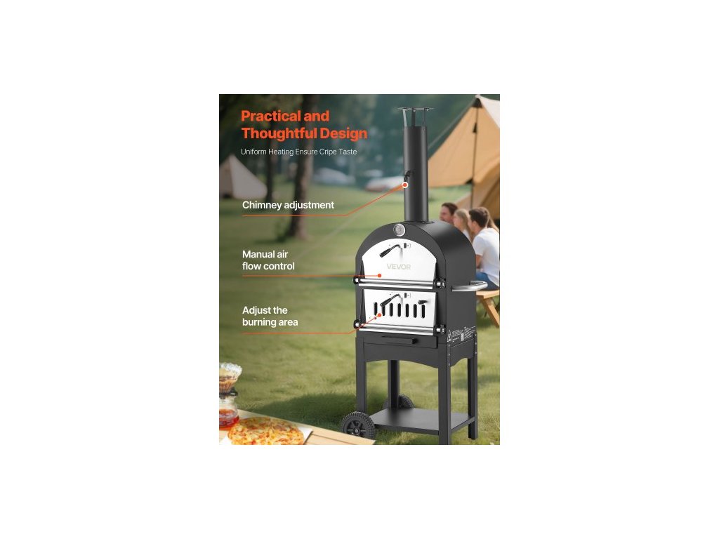 Venkovní pec na pizzu , pece na pelety 12", 2vrstvá pec na pizzu na dřevo, venkovní pec na pizzu na dřevo se 2 odnímatelnými kolečky, maximální teplota 1000℉, pece na pizzu pro grilování