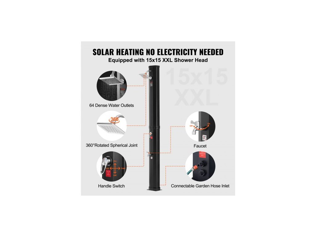Venkovní solární sprcha , sprchová sada u bazénu o objemu 35 l se sprchovou hlavicí a nožní sprchovou baterií, dvojitá přezka, rychlá montáž s předvrtanými otvory pro venkovní zahradní a plážovou vířivku u bazénu