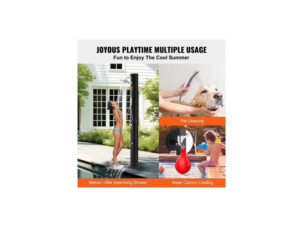 Venkovní solární sprcha , sprchová sada u bazénu o objemu 40 l se 2 sprchovými hlavicemi a nožní sprchovou baterií, ruční/závěsná, dva režimy, rychlá montáž, s předvrtaným otvorem pro venkovní zahradní/plážovou vířivku u bazénu