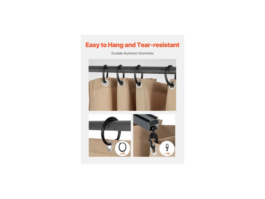 Venkovní závěsy na altán , vhodné pro většinu altánů o rozměrech 10' x 10' x 6,7', 4dílné boční závěsy na ochranu soukromí se zipy, náhrada venkovní závěsy pro stříšku terasy, pouze závěs, khakiOchrana soukromí