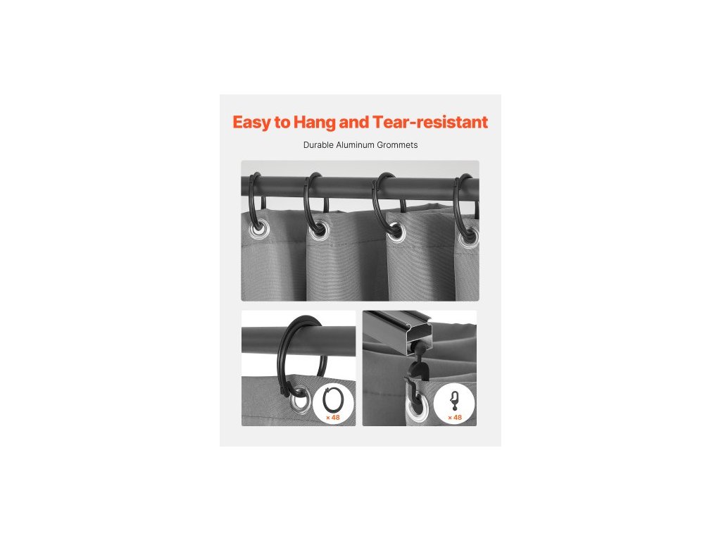 Venkovní závěsy na altán , vhodné pro většinu altánů o rozměrech 10' x 10' x 6,9', 4dílné boční závěsy pro zajištění soukromí se zipy, náhrada za venkovní závěs pro stříšku terasy, pouze závěs, šedý