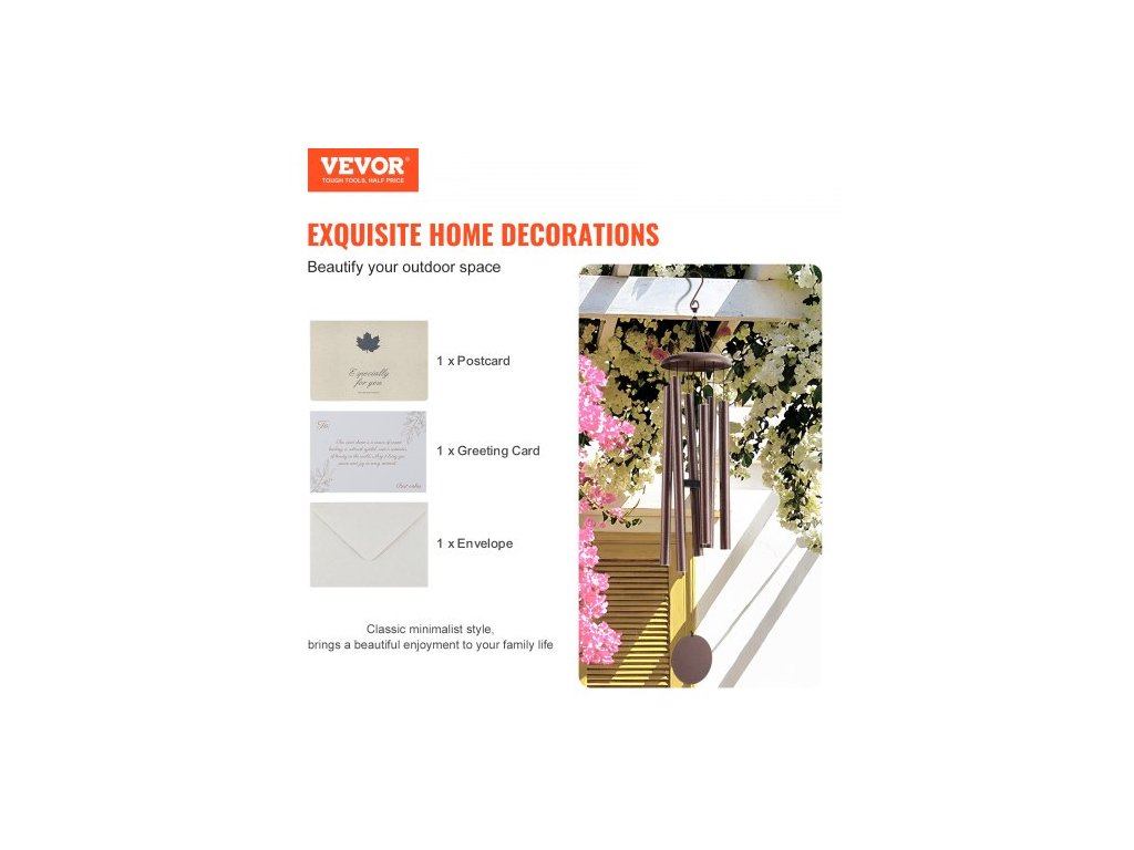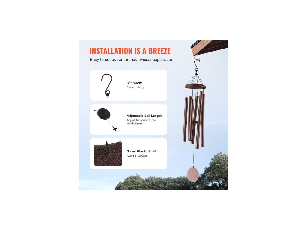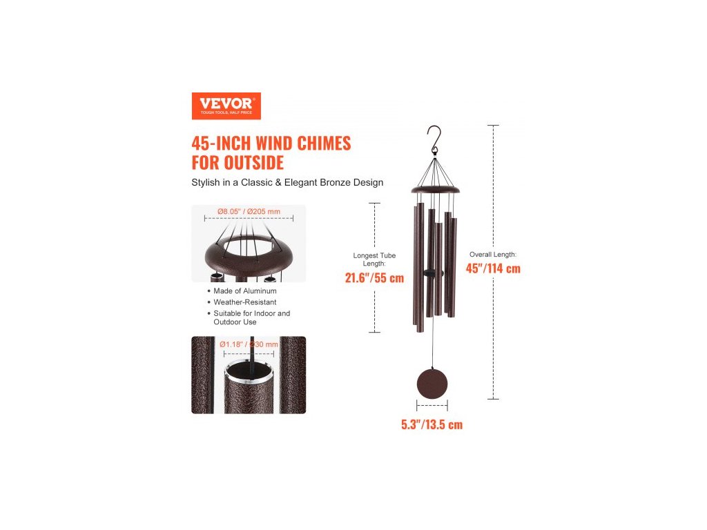 Venkovní zvonkohra , 1143 mm, Zvonkohra v hlubokém tónu se 6 trubicemi, Unikátní velká pamětní zvonkohra k výročí, Úžasná venkovní dekorace pro vaši terasu, verandu, zahradu a dvůr, BronzováUživatelský zážitek