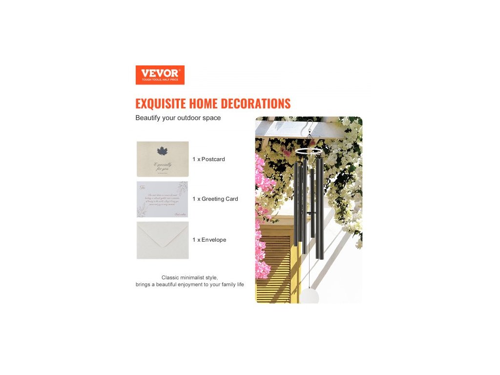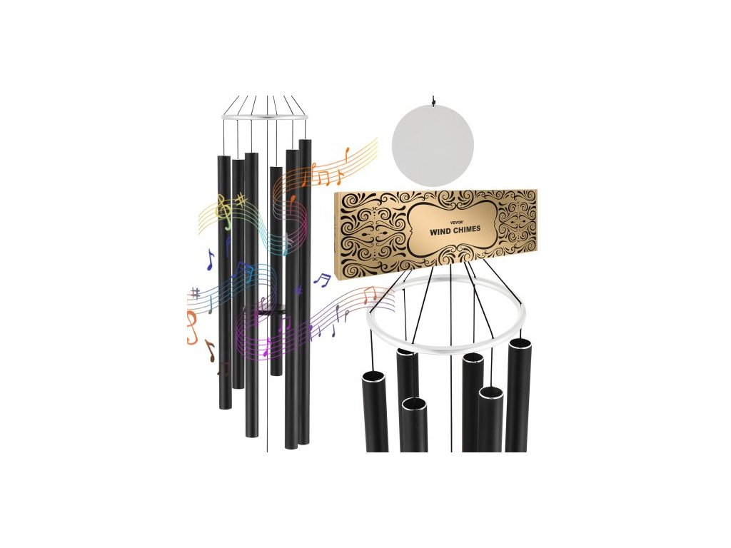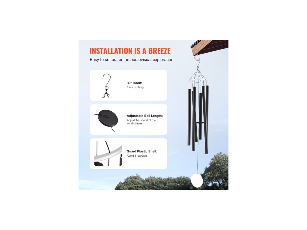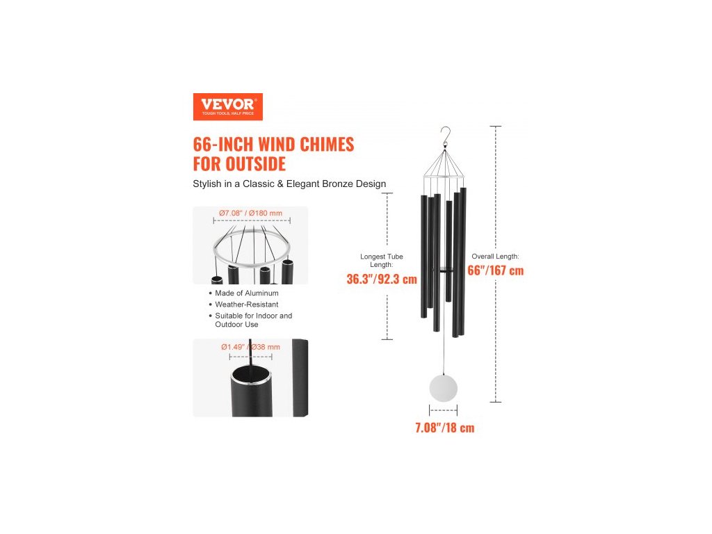 Venkovní zvonkohra , 1677 mm, Zvonkohra v hlubokém tónu se 6 trubicemi, Unikátní velká pamětní zvonkohra k výročí, Úžasná venkovní dekorace pro vaši terasu, verandu, zahradu a dvůr, ČernáUživatelský zážitek