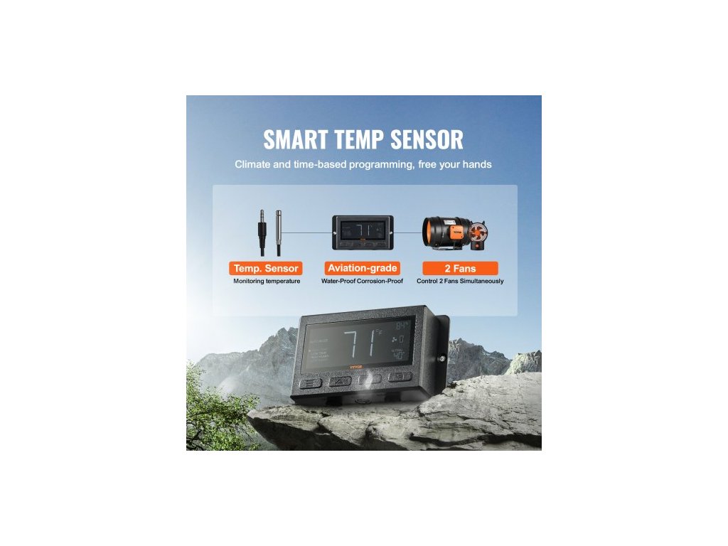 Ventilátor do potrubí , 203,2 mm, 506,2 CFM, s regulátorem teploty a vlhkosti, tichý EC motor, odsávací ventilátor pro chlazení, pěstební stany a hydroponii