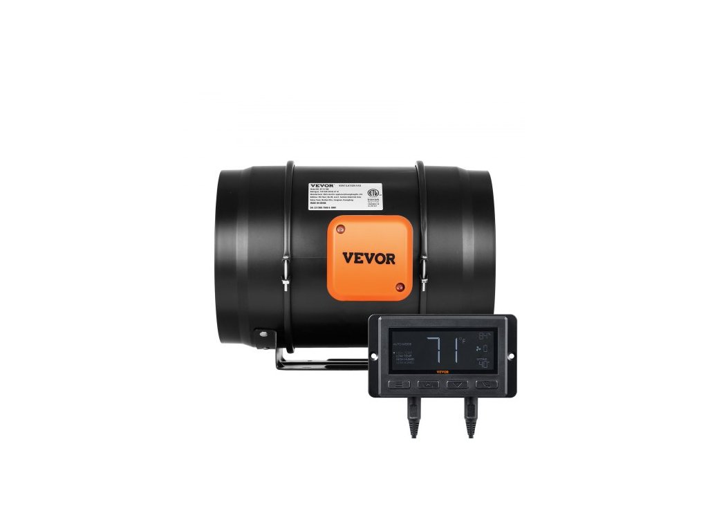 Potrubní ventilátor , 203,2 mm 506,2 CFM s regulátorem teploty a vlhkosti, tichý EC motor, odsávací ventilátor pro chladicí zařízení, pěstební stany a hydroponiiVysoce účinný EC motor