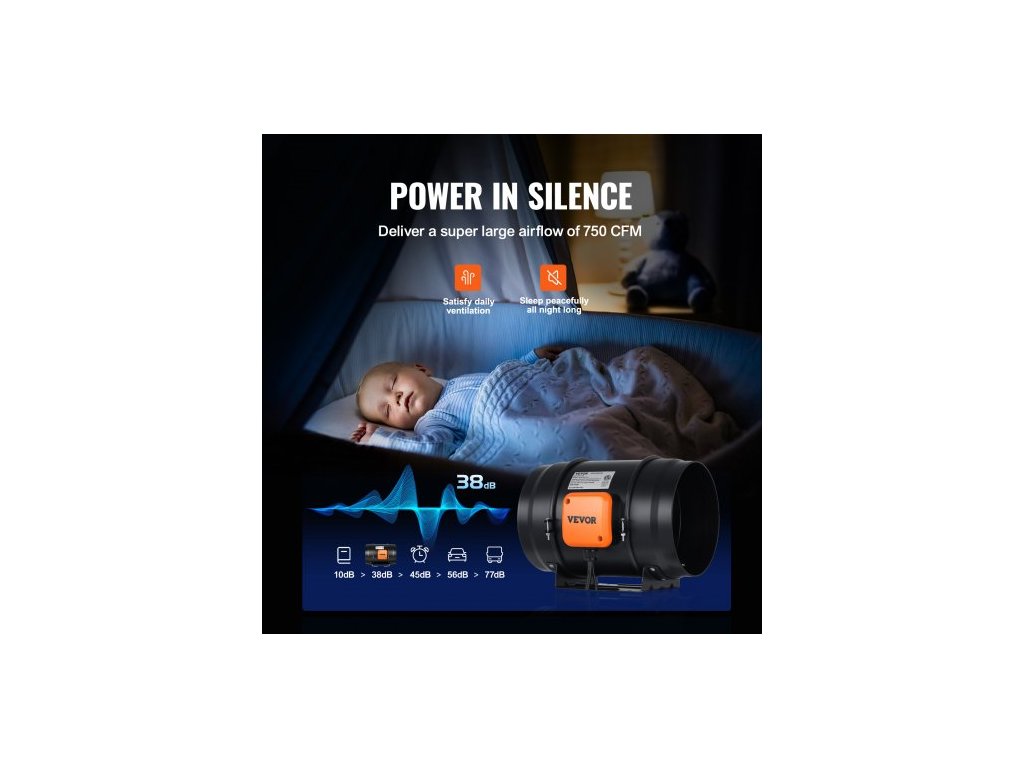 Řadový potrubní ventilátor, 203,2 mm 506,2 CFM s regulátorem otáček, tichý ventilátor s AC motorem pro chladicí zařízení, pěstební stany a hydroponiiZlepšení cirkulace vzduchu