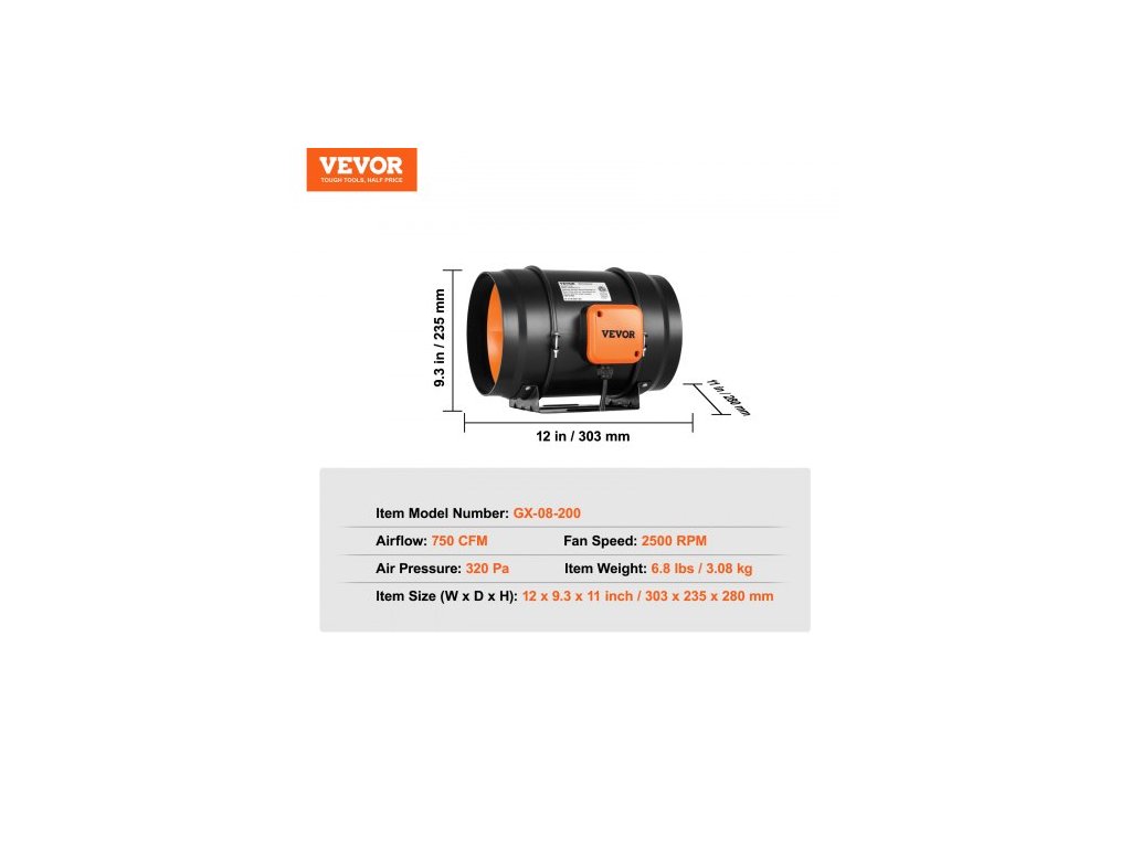 Průtok vzduchu: 750 CFM,Hladina hluku: ≤ 50 dB (přibližně 38 dB),Rozměry (D x Š x V): 12 x 9,3 x 11 palců / 303 x 235 x 280 mm,Typ motoru: Měděný motor,Model: GX-08-200,Tlak vzduchu: 320 Pa,Jmenovitý výkon: 126 W,Otáčky ventilátoru: 2500 ot./min,Hmotnost: 6,8 lbs / 3,08 kg,Napětí / Frekvence: AC 220-240V 50Hz
