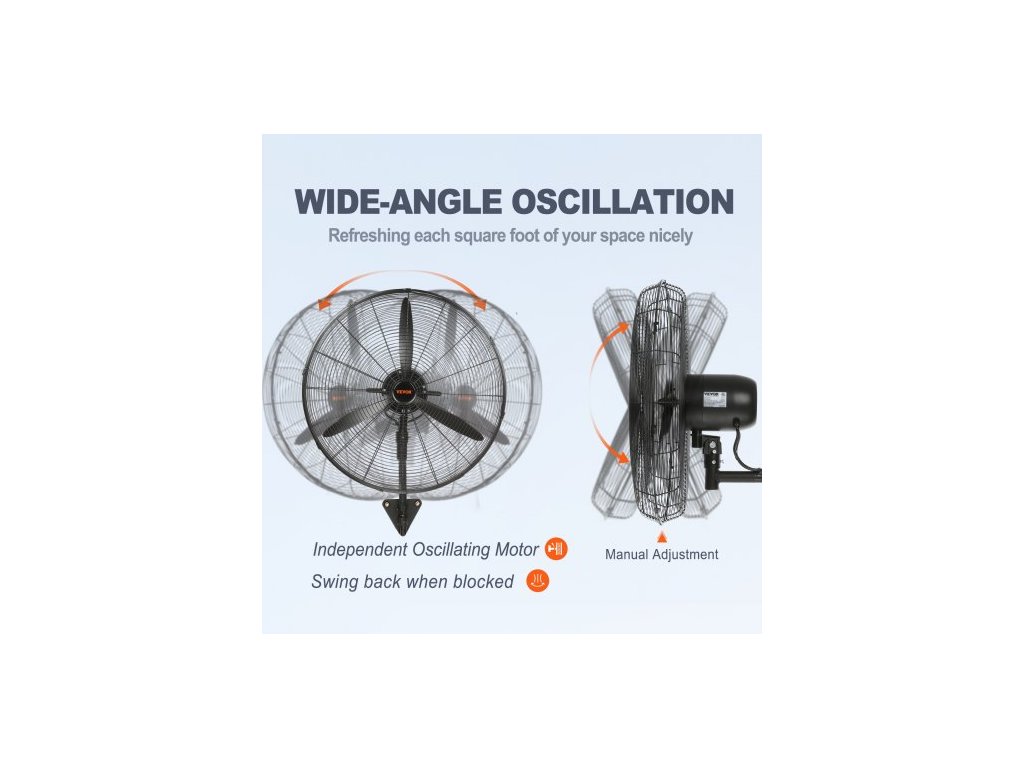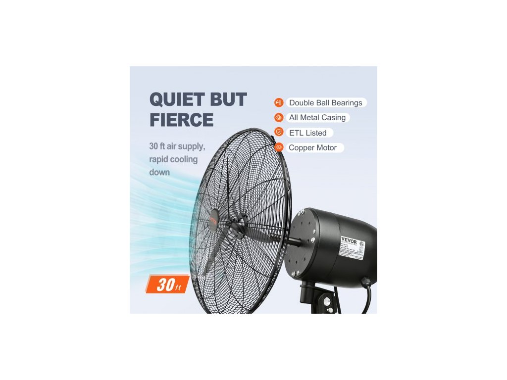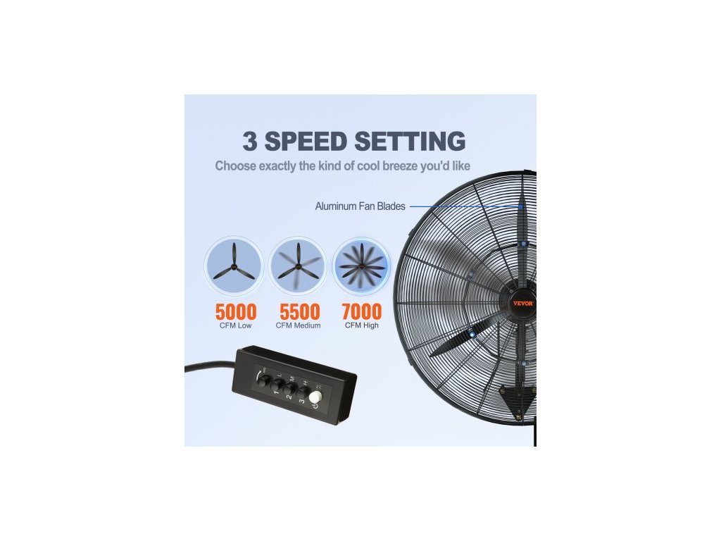 Mist Fan, 24,2" oscilační vodotěsný ventilátor, 3 rychlosti, 7000 CFM, komerční nebo rezidenční ventilátor pro chlazení skladu, skleníku, dílnyInstalace kovové základny