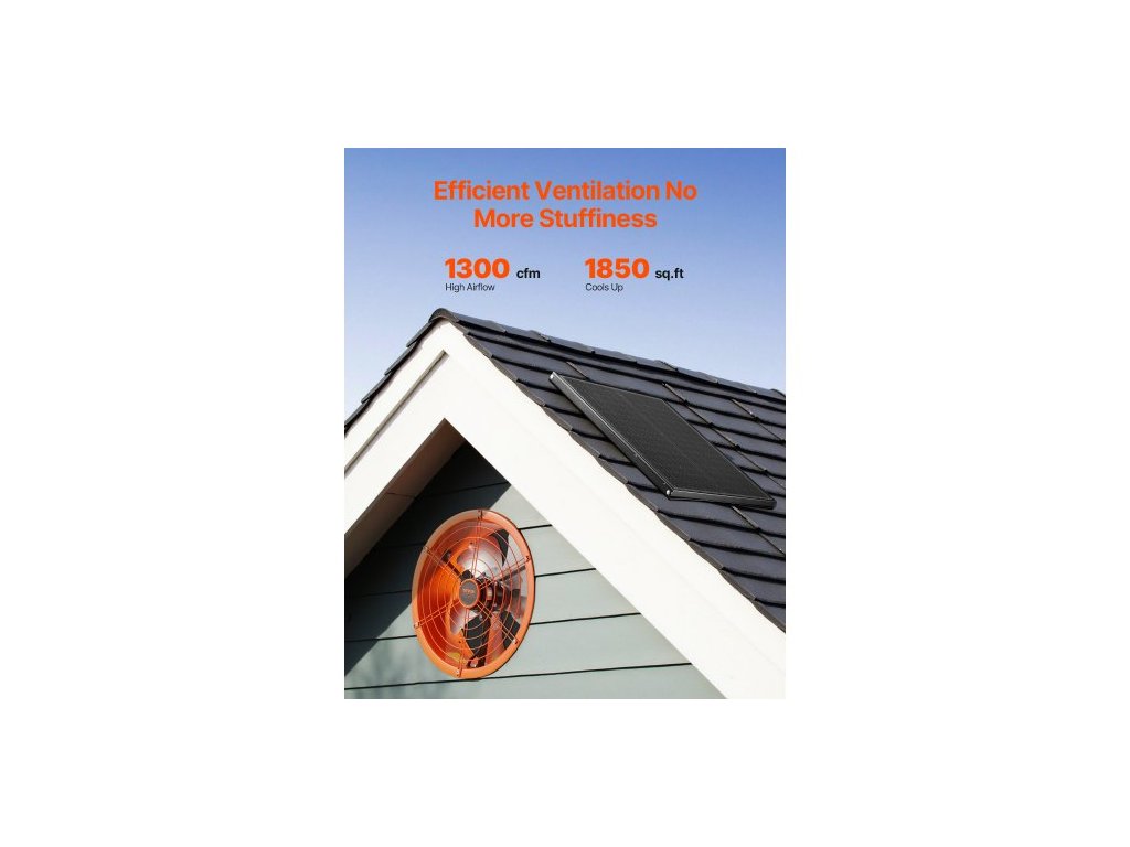 Ventilátor pro montáž na štít, 14palcový solární ventilátor do podkroví s nastavitelným termostatem a vnější mřížkou, 1300 CFM, ventilátor pro domácnost, chladí až 1850 čtverečních stop, tiché větrání pro střechu, garáž, dílnu, černýVentilátor pro montáž na štít