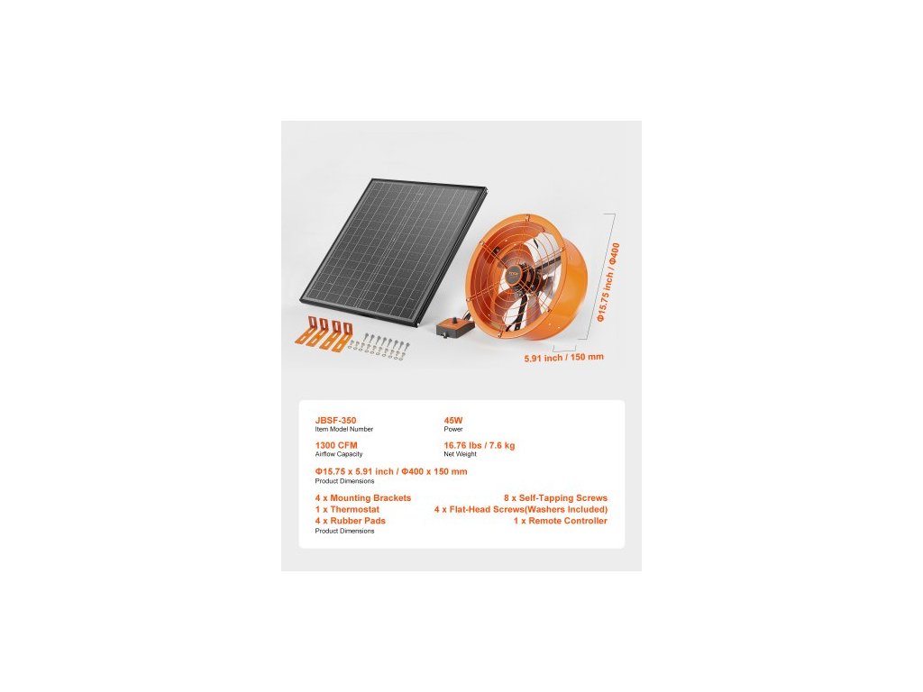 Barva: Černá,Číslo modelu položky: JBSF-350,Rozměry produktu: Φ15,75 x 5,91 palce / Φ400 x 150 mm,Čistá hmotnost: 16,76 lbs / 7,6 kg,Příkon: 45 W,Kapacita proudění vzduchu: 1300 CFM