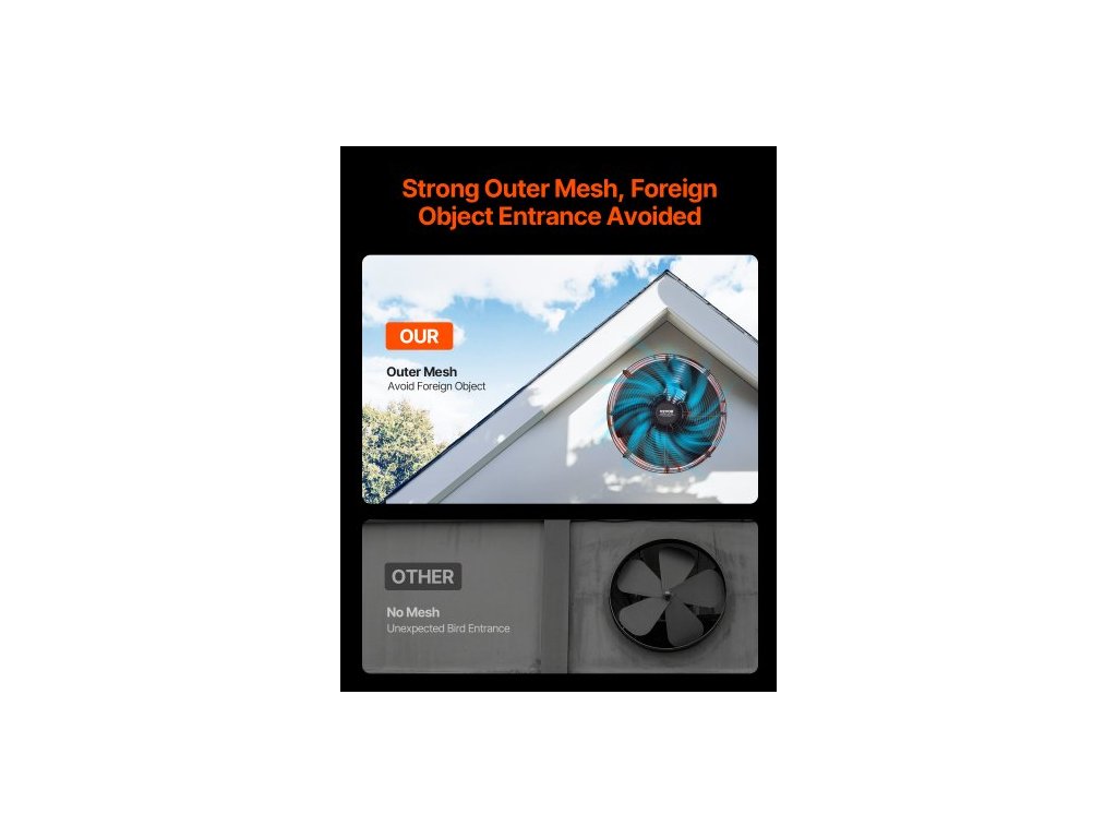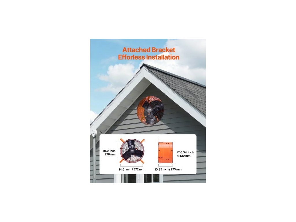 Ventilátor pro montáž na štít, 16palcový půdní ventilátor s nastavitelným termostatem a vnější mřížkou, 2940 CFM, ventilátor pro domácnost, chladí až 4200 čtverečních stop, tiché větrání pro střechu, garáž a dílnu, zářivě oranžováVentilátor pro montáž na štít