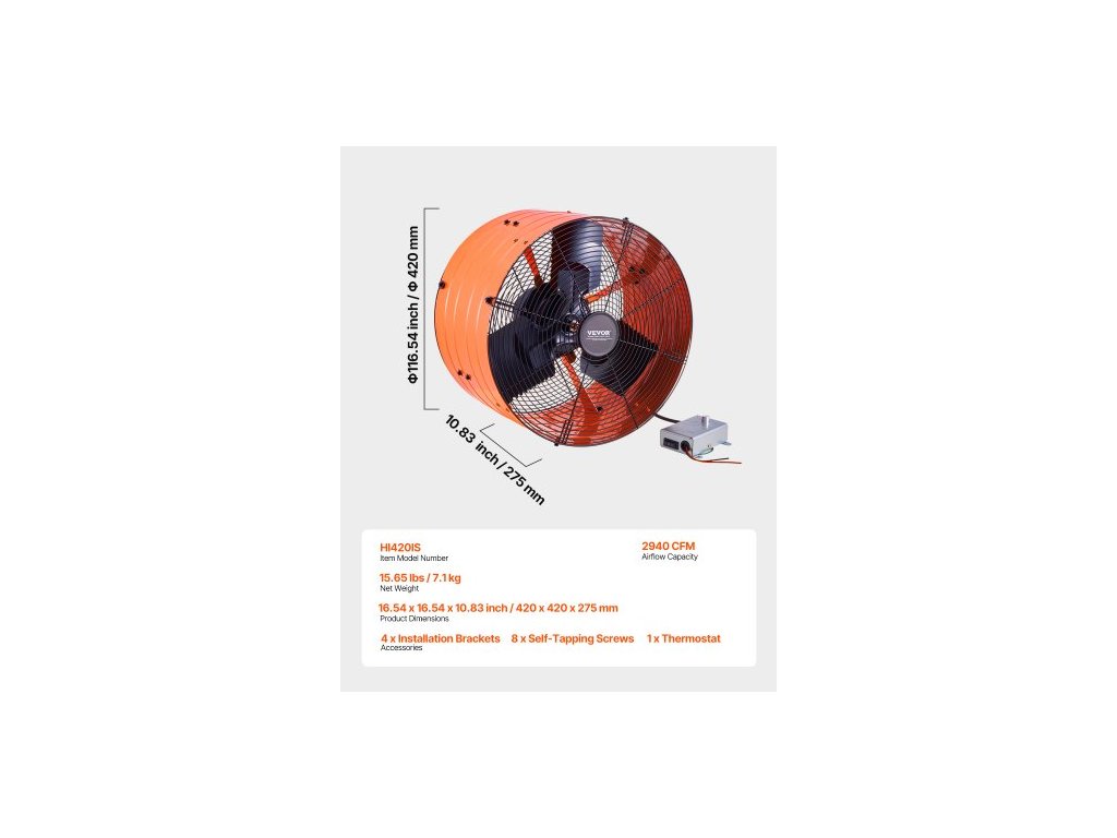 Barva: zářivě oranžová,Číslo modelu položky: HI420IS,Rozměry produktu: 16,54 x 16,54 x 10,83 palce / 420 x 420 x 275 mm,Čistá hmotnost: 15,65 lbs / 7,1 kg,Kapacita proudění vzduchu: 2940 CFM