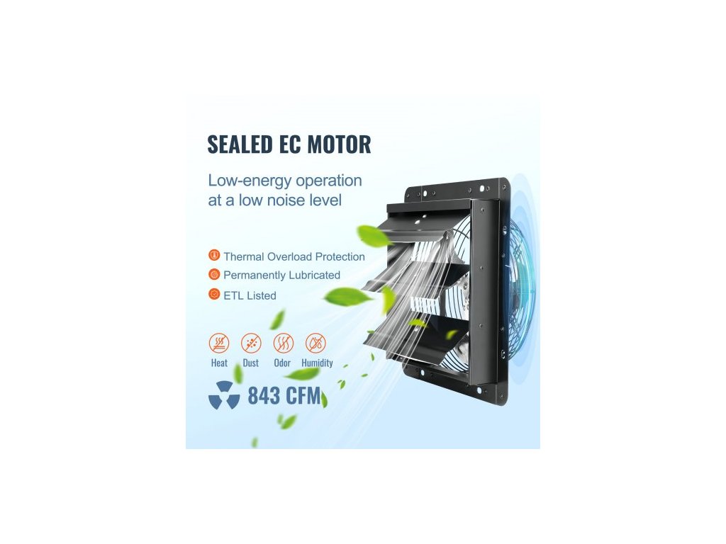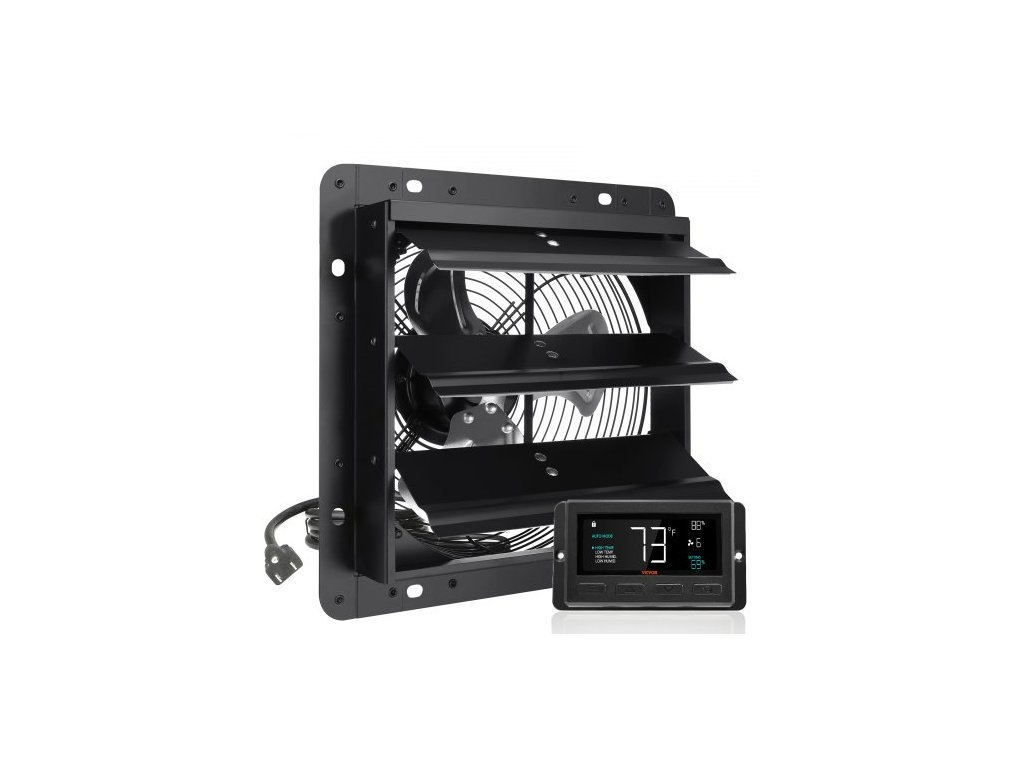 Ventilátor s klapkami, 254 mm s regulátorem teploty a vlhkosti, EC motor, 843 CFM, nástěnný ventilátor s proměnnou rychlostí a montáží do podkroví, větrání a chlazení pro skleníky, garáže, přístřeškyUžijte si čerstvý vzduch
