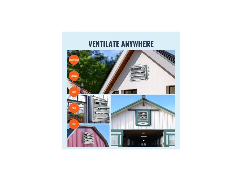 Odsávací ventilátor s klapkami, 406 mm, vysokorychlostní, 1400 ot./min., 2000 CFM, hliníkový nástěnný ventilátor do podkroví s AC motorem, větrání a chlazení pro skleníky, garáže, kůlny, obchodyUžijte si čerstvý vzduch