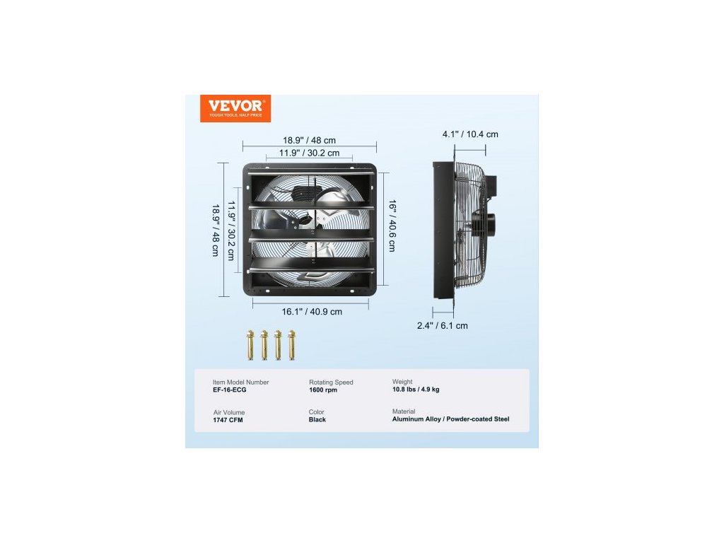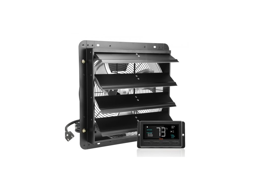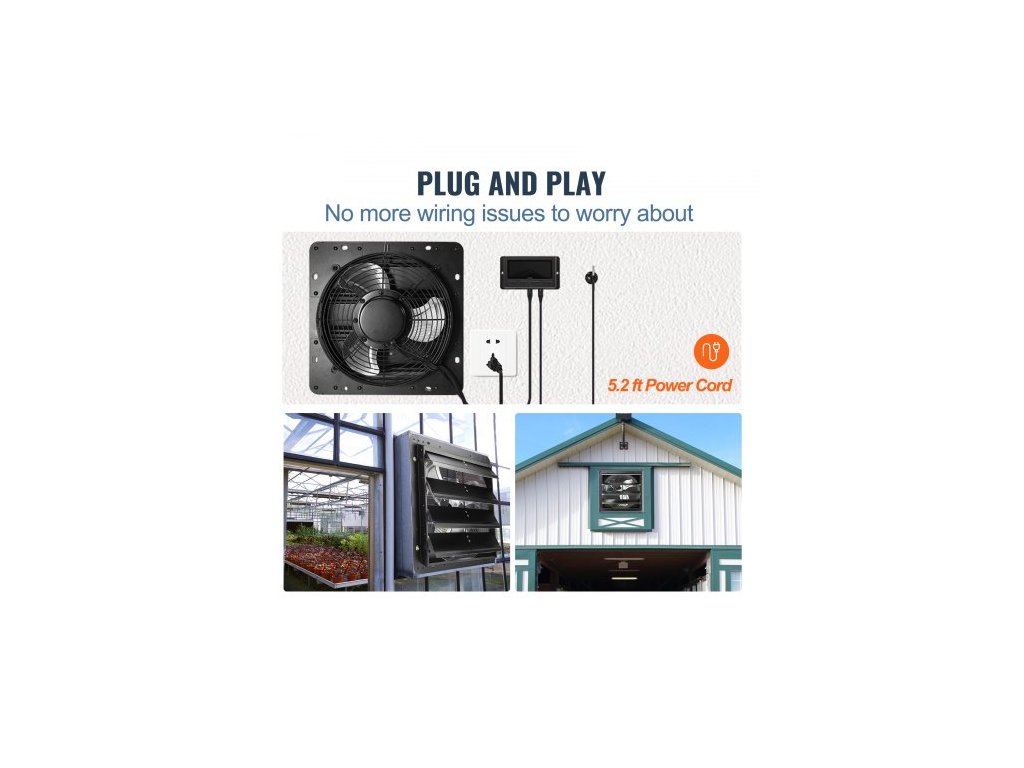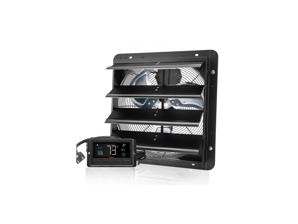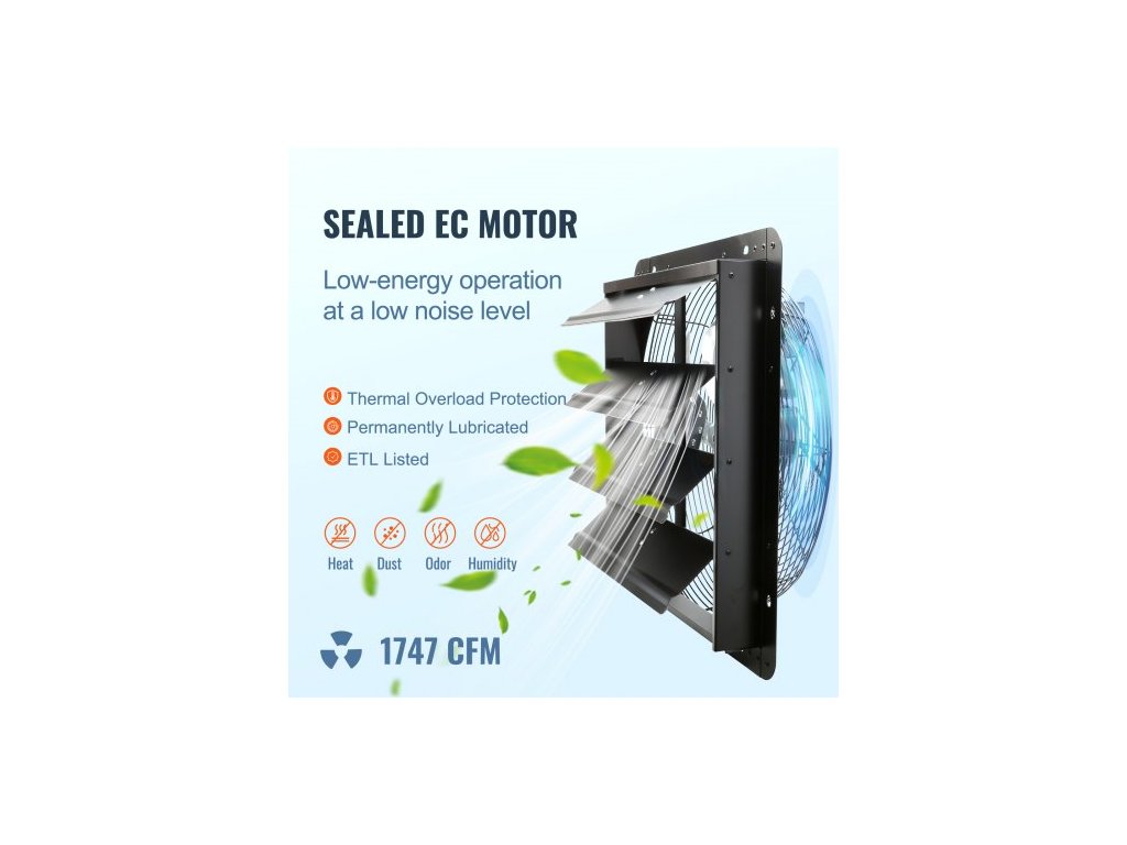 Ventilátor s klapkami, 406 mm s regulátorem teploty a vlhkosti, EC motor, 1747 CFM, nástěnný ventilátor s proměnnou rychlostí a montáží do podkroví, větrání a chlazení pro skleníky, garáže, přístřeškyUžijte si čerstvý vzduch
