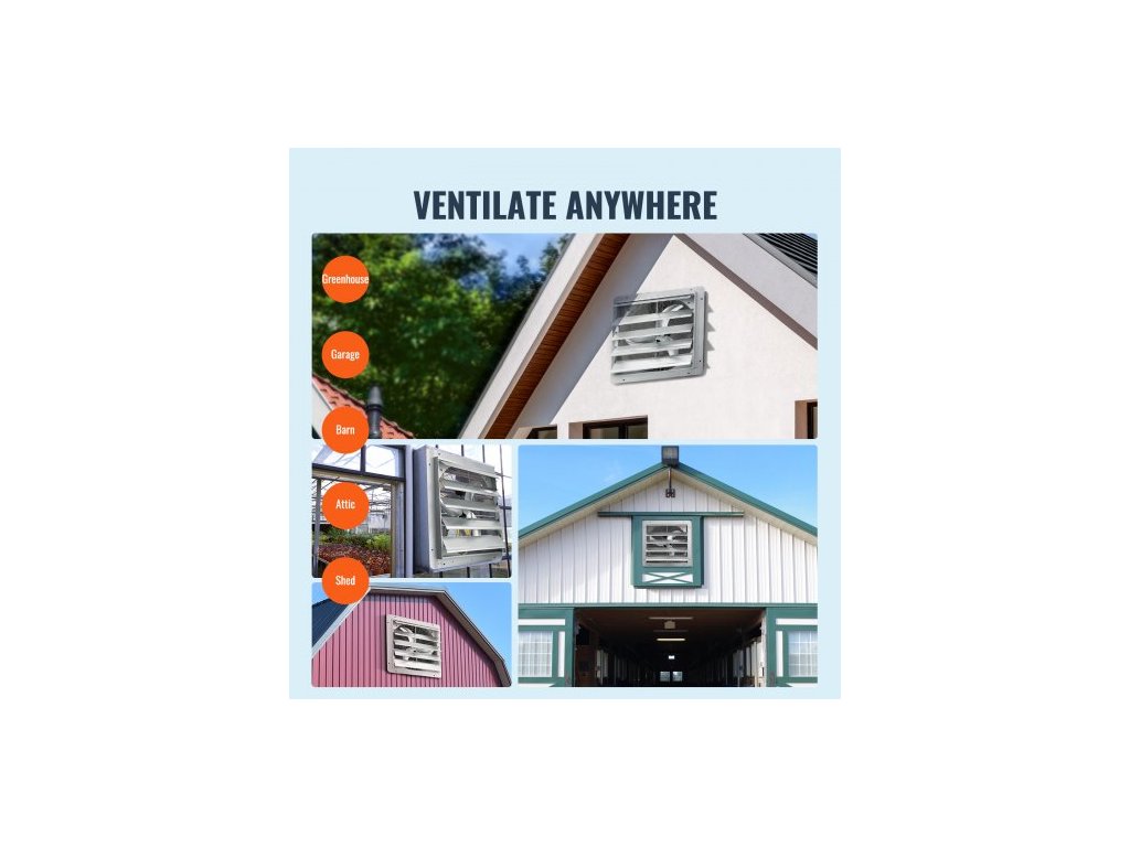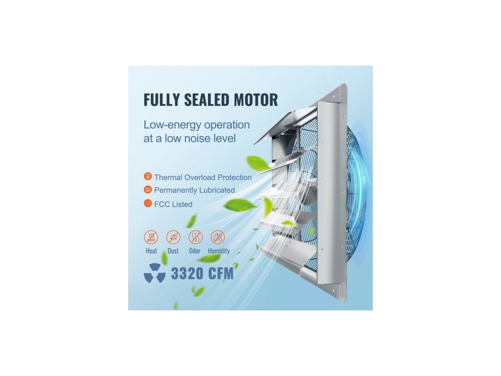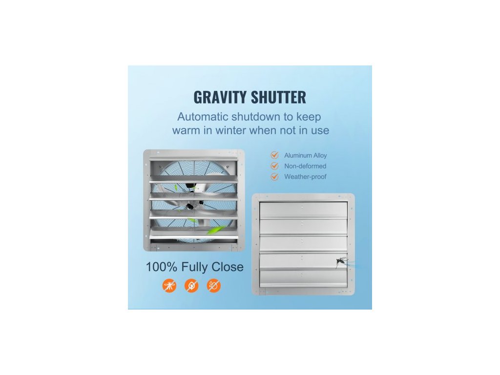 Odsávací ventilátor s klapkami, 610 mm, vysokorychlostní, 1400 ot./min., 2892 CFM, hliníkový nástěnný ventilátor do podkroví s AC motorem, větrání a chlazení pro skleníky, garáže, přístřešky, obchodyUžijte si čerstvý vzduch