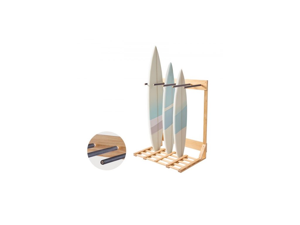 Vertikální stojan na surfové prkno , 4patrový dřevěný stojan na surfové prkno pro uložení a vystavení, volně stojící organizér na stojan na surfové prkno, držák surfových prken pro wakeboardy, snowboardy, kiteboardy, shortboardy, lyžeHladký povrch
