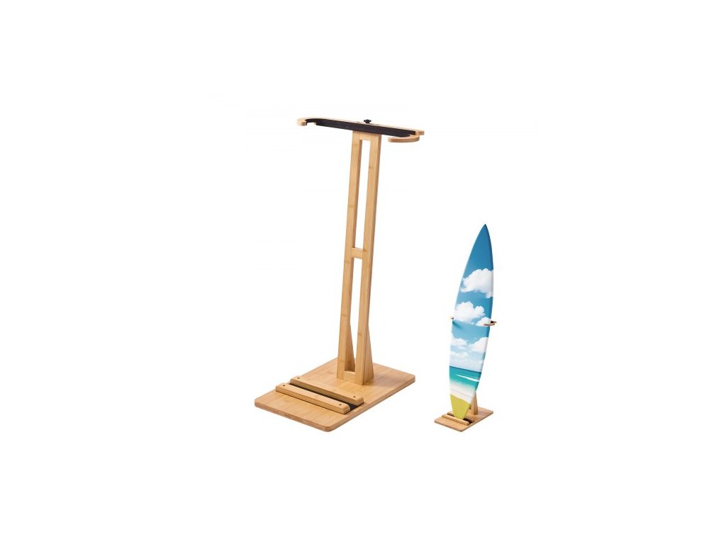 Vertikální stojan na surfové prkno , dřevěný stojan na surfové prkno pro uložení a vystavení, nastavitelný a volně stojící organizér na stojan na surfové prkno s polstrováním, pro wakeboardy, snowboardy, kiteboardy, shortboardy, lyžeHladký povrch