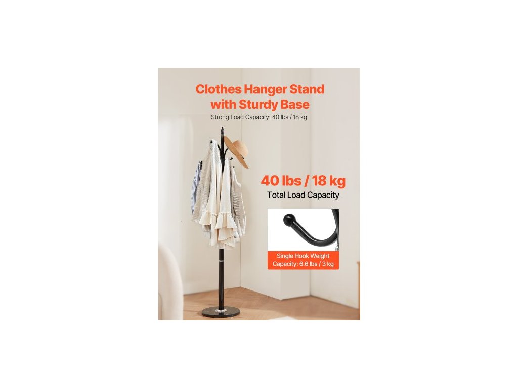 Věšák na kabáty Volně stojící, Věšák na kabáty ve tvaru stromu se stabilní mramorovou základnou a 6 háčky, Volně stojící věšák na kabáty do předsíně, ložnice, kanceláře, obývacího pokoje, Moderní ramínko na kabáty, klobouky, tašky
